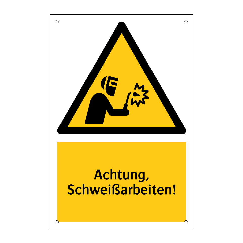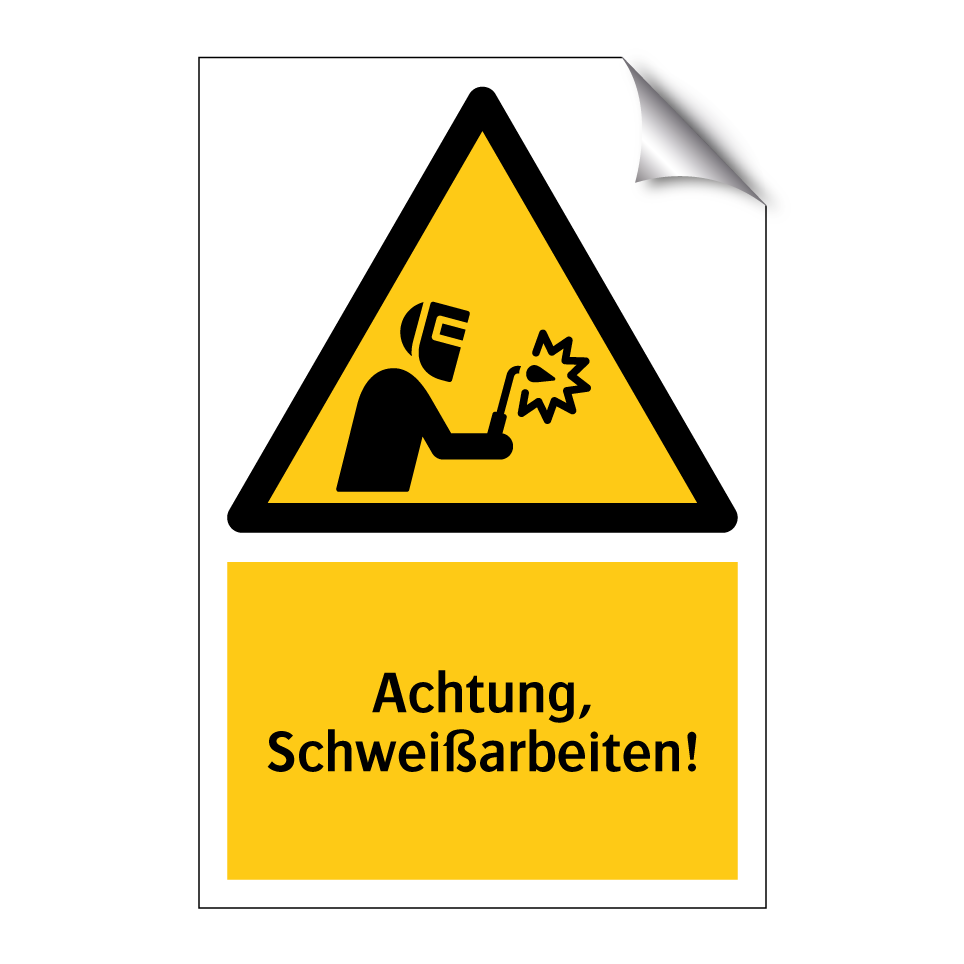 Warnschild mit dem Text Achtung, Schweißarbeiten!