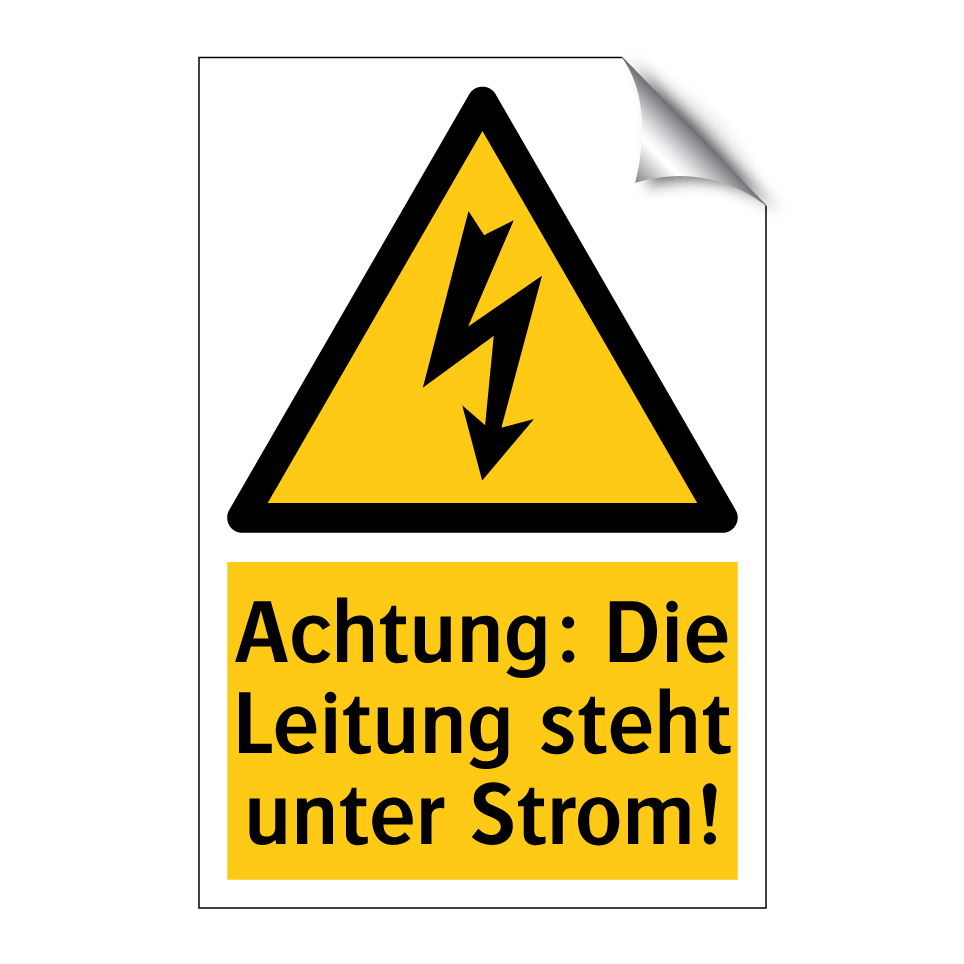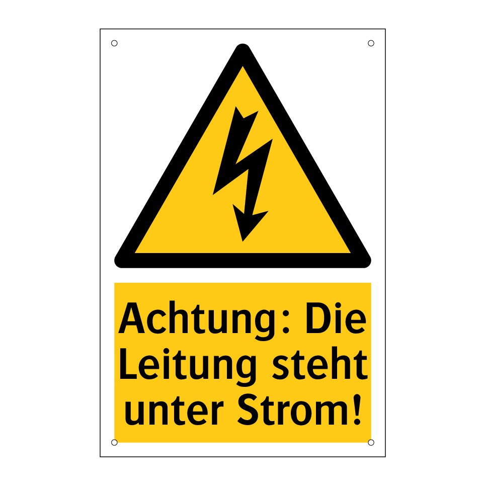 Warnschild mit dem Text Achtung: Die Leitung steht unter Strom!