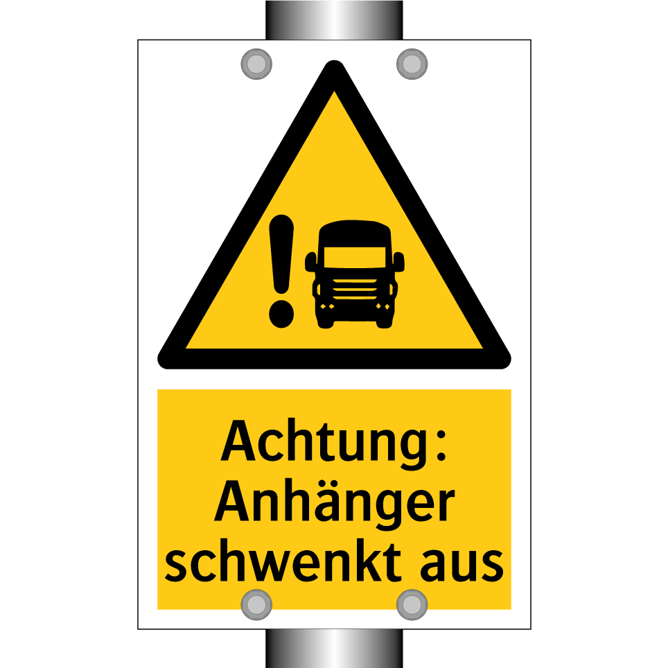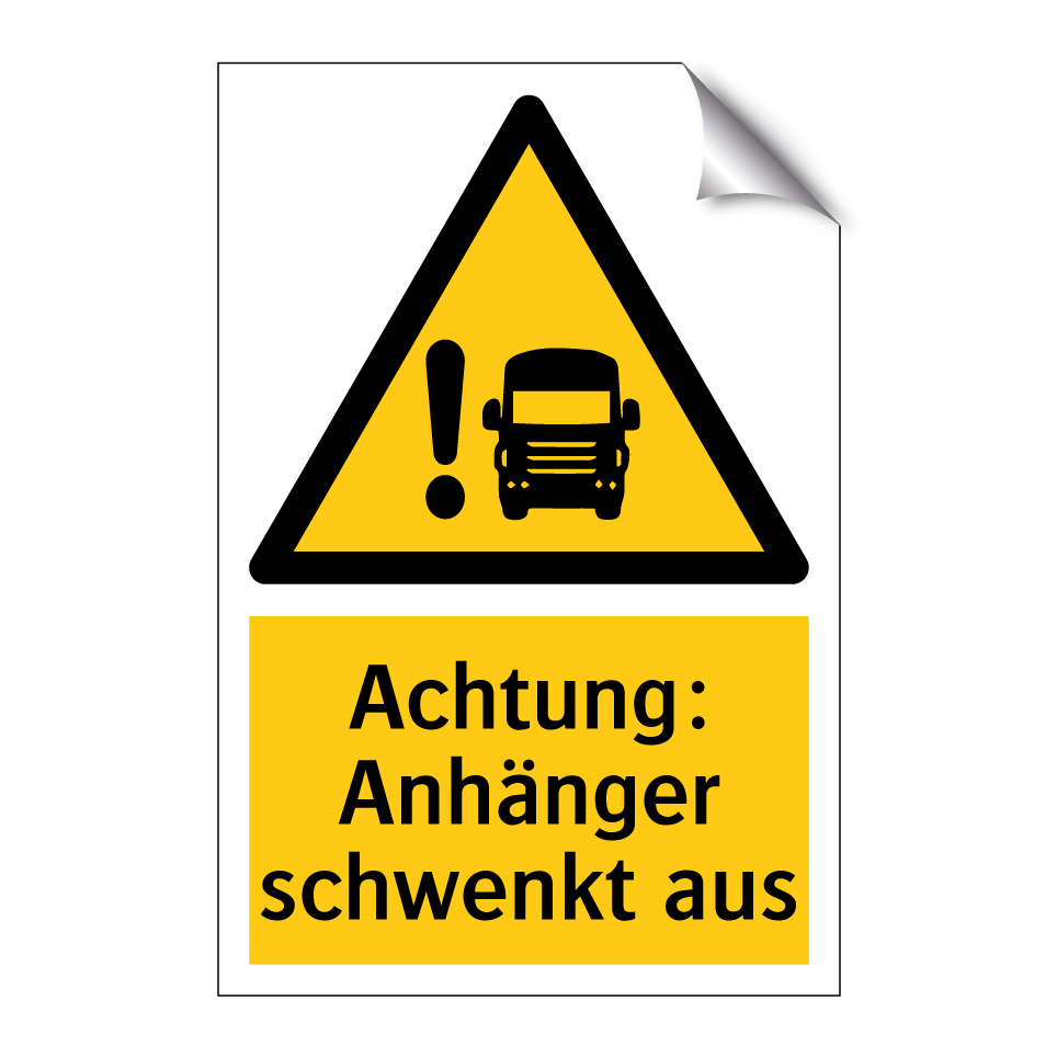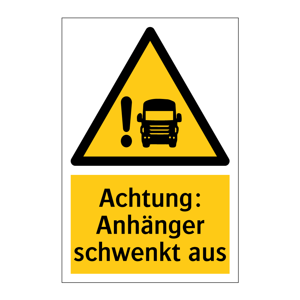 Warnschild mit dem Text Achtung: Anhänger schwenkt aus