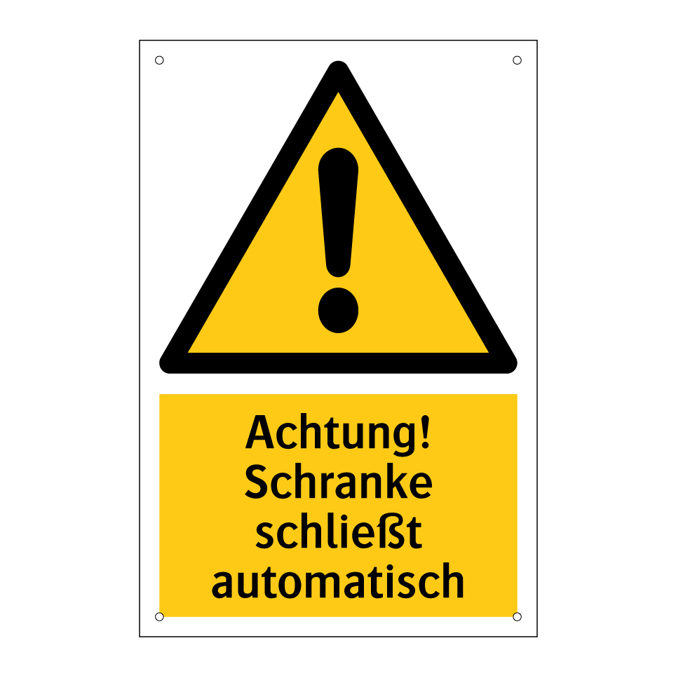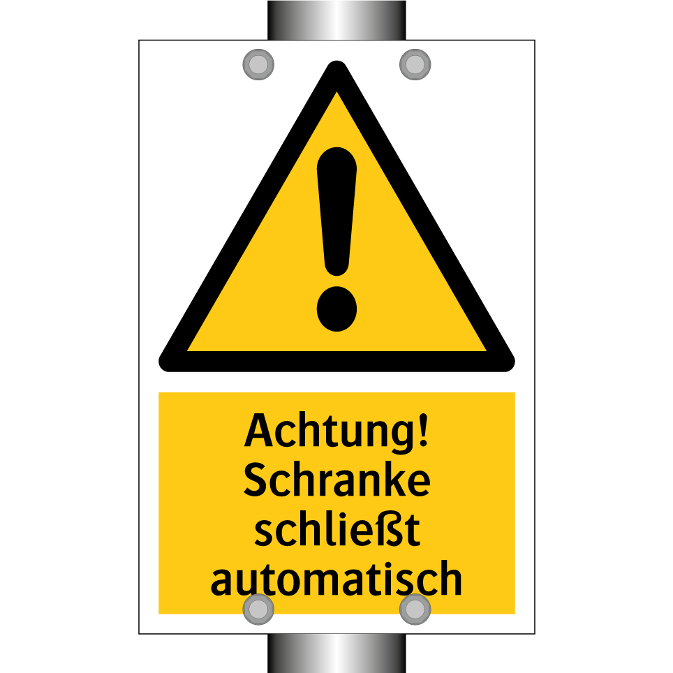 Warnschild mit dem Text Achtung! Schranke schließt automatisch