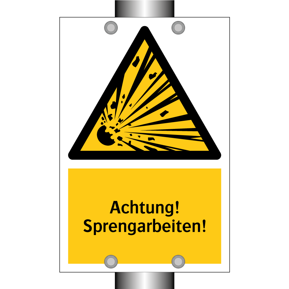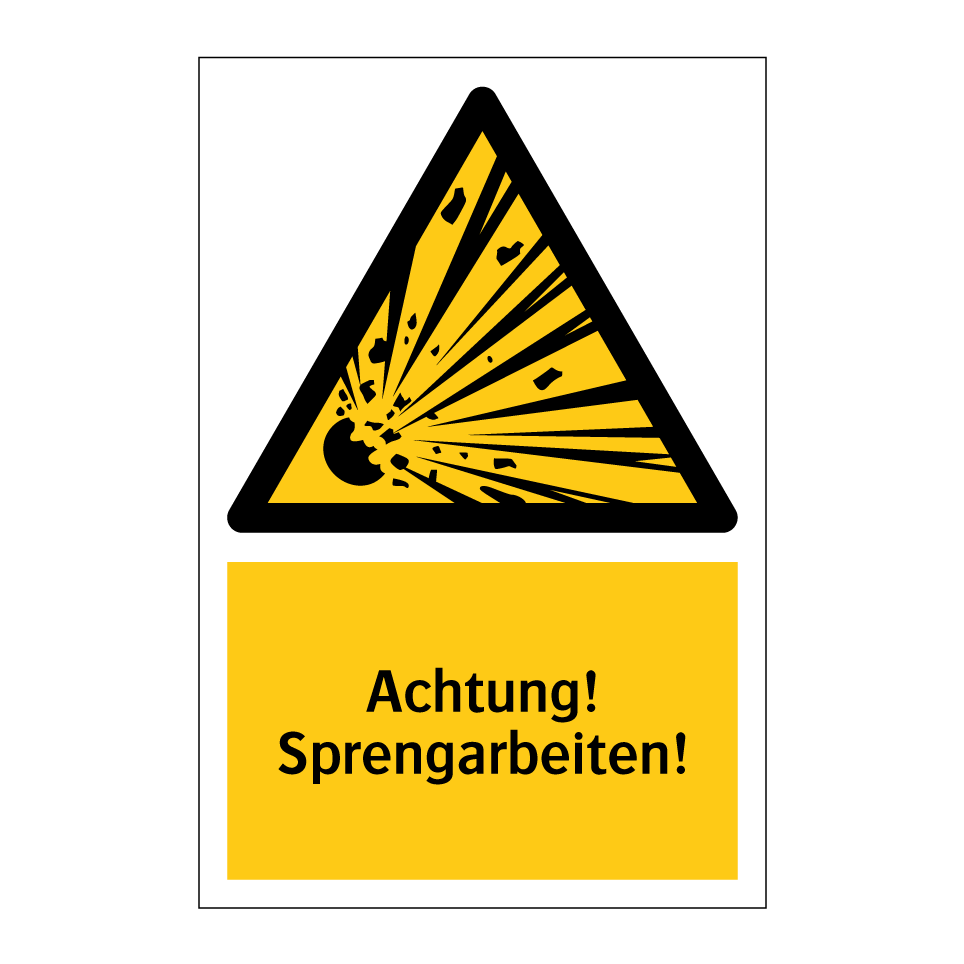 Warnschild mit dem Text Achtung! Sprengarbeiten!