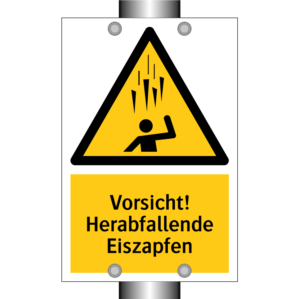 Warnschild mit dem Text Vorsicht! Herabfallende Eiszapfen