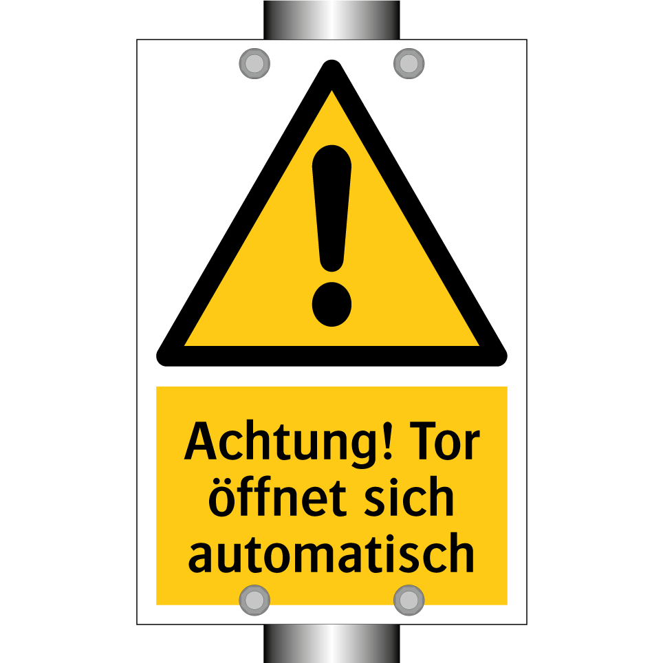 Warnschild mit dem Text Achtung! Tor öffnet sich automatisch