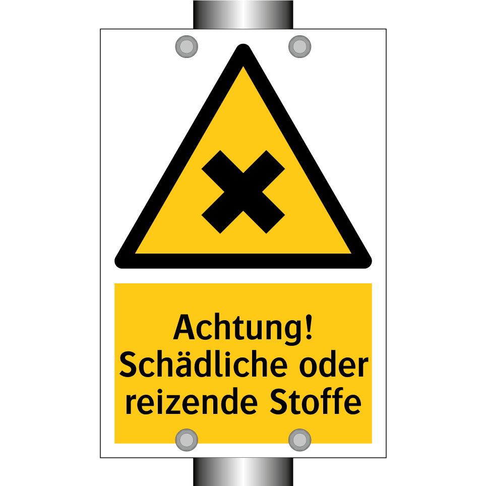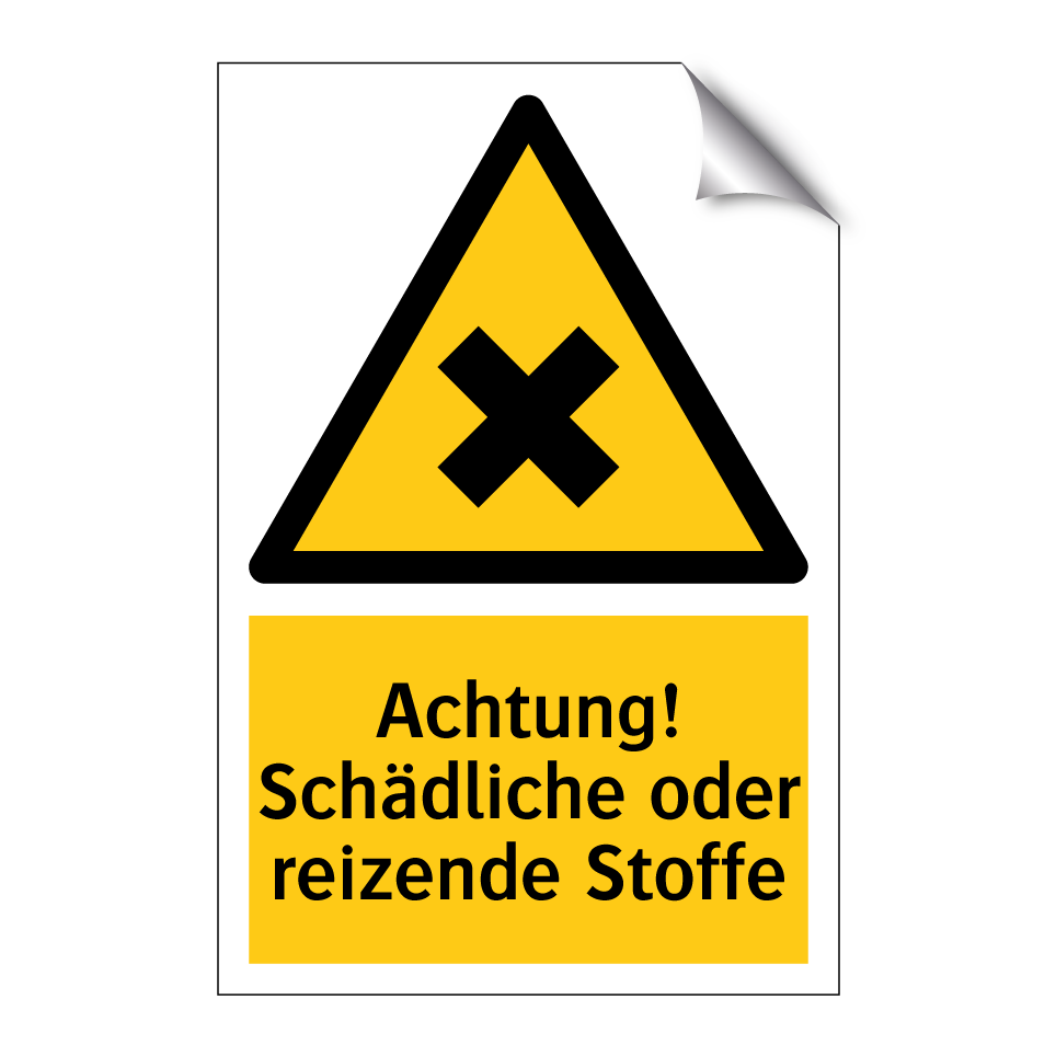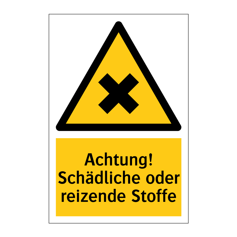 Warnschild mit dem Text Achtung! Schädliche oder reizende Stoffe