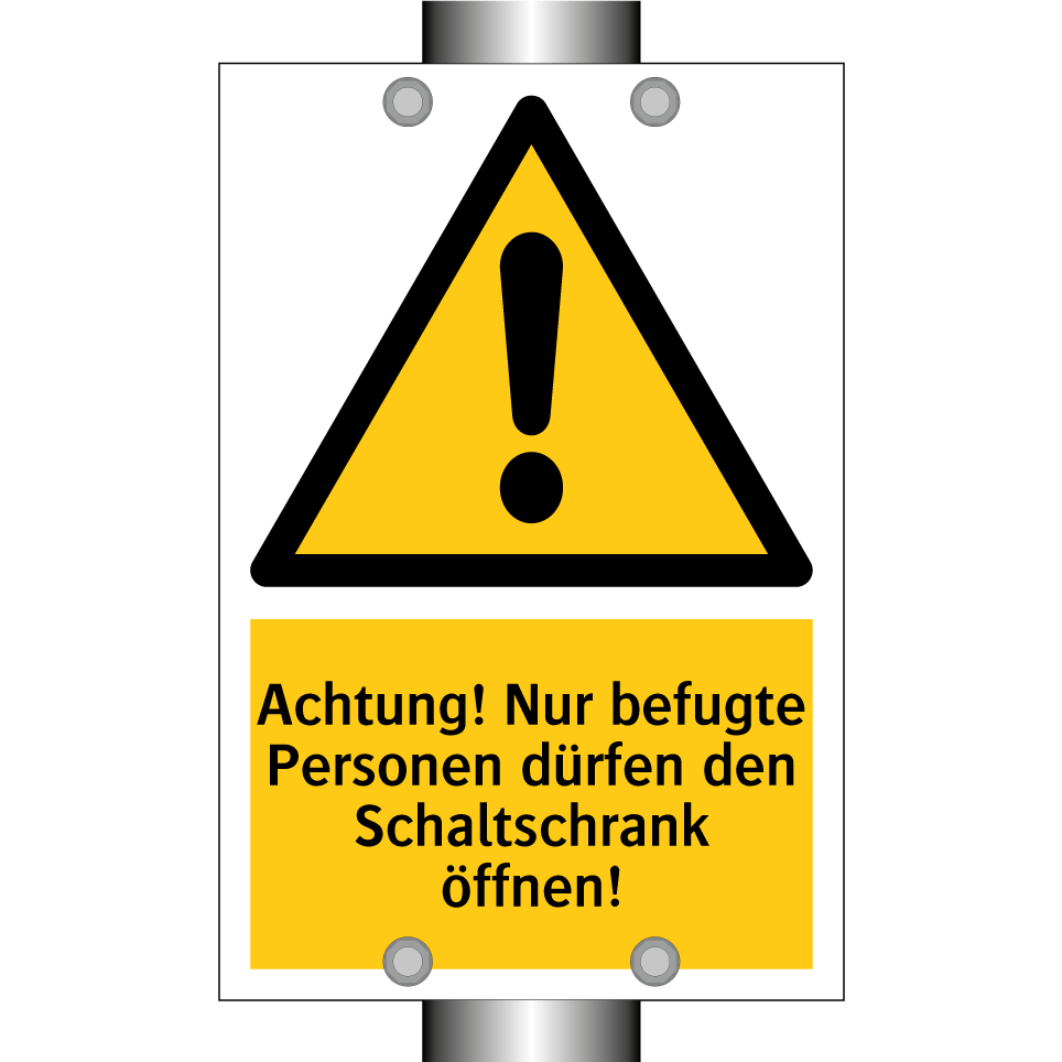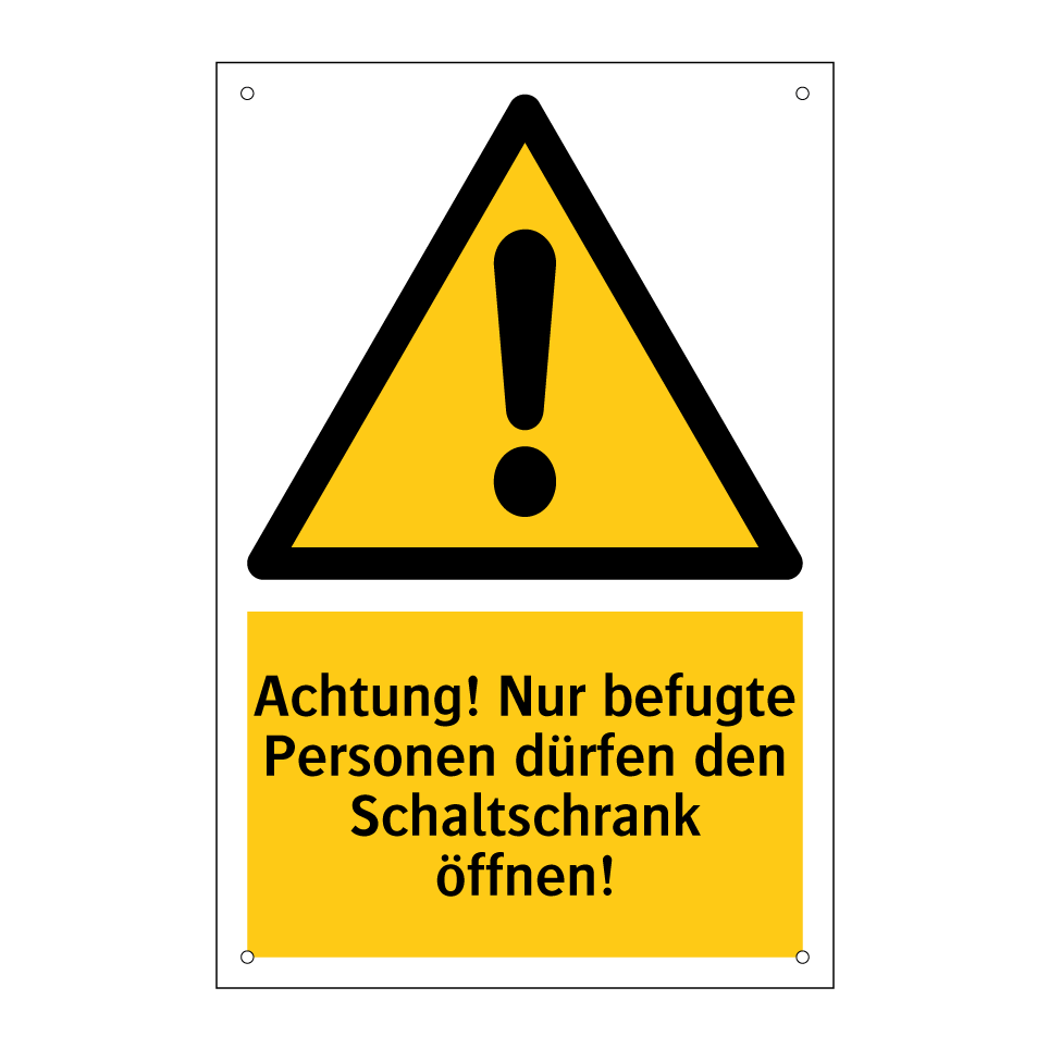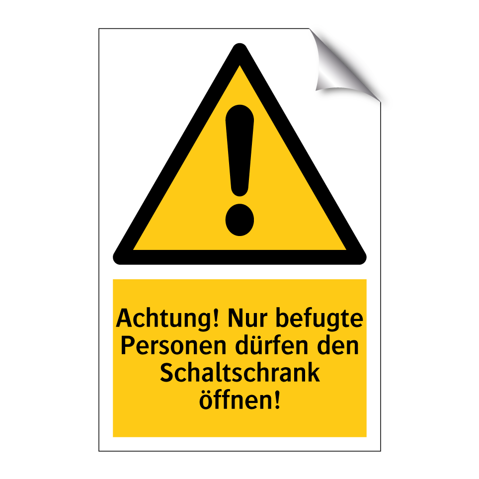 Warnschild mit dem Text Achtung! Nur befugte Personen dürfen den Schaltschrank öffnen!