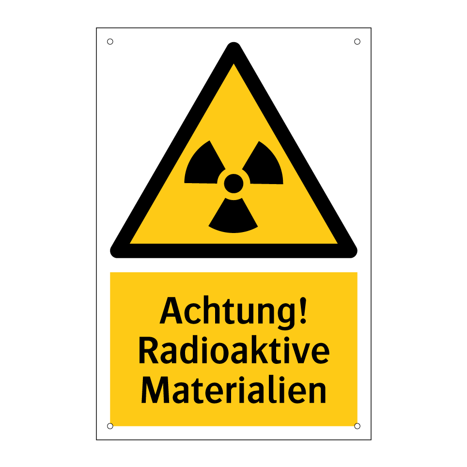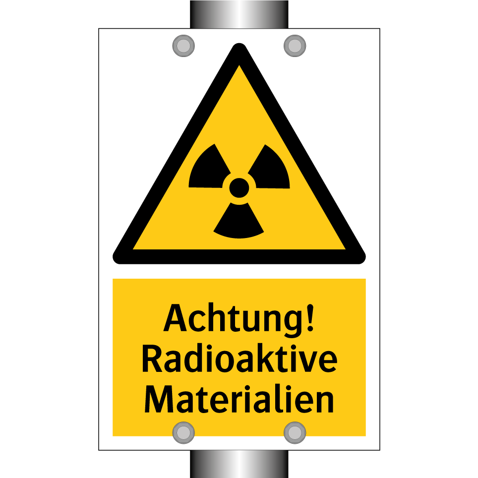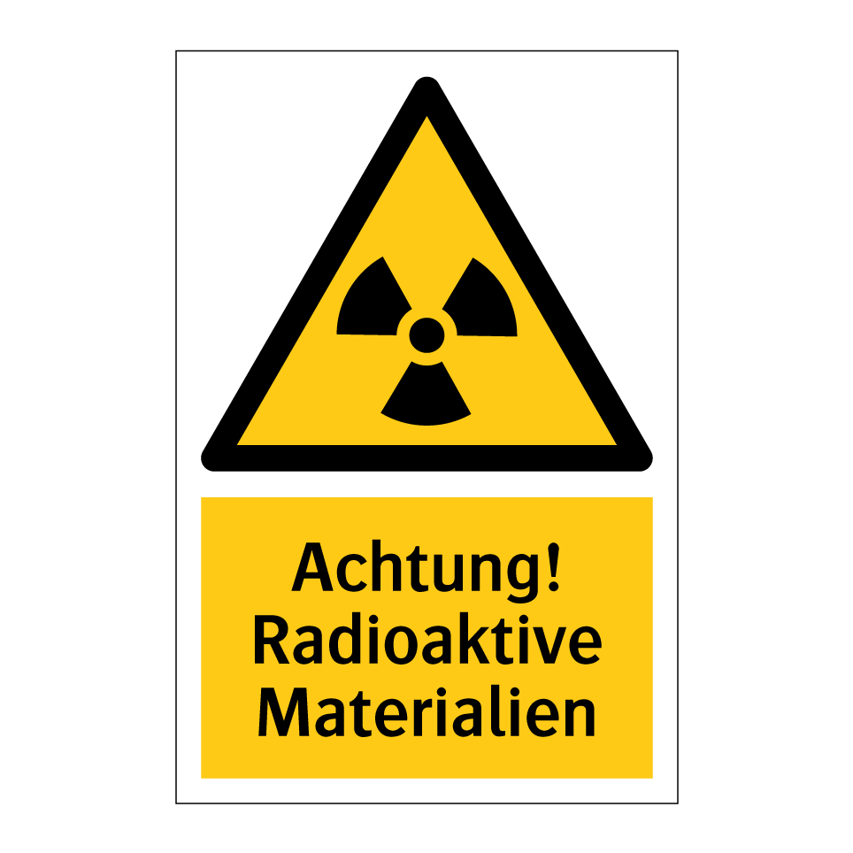 Warnschild mit dem Text Achtung! Radioaktive Materialien