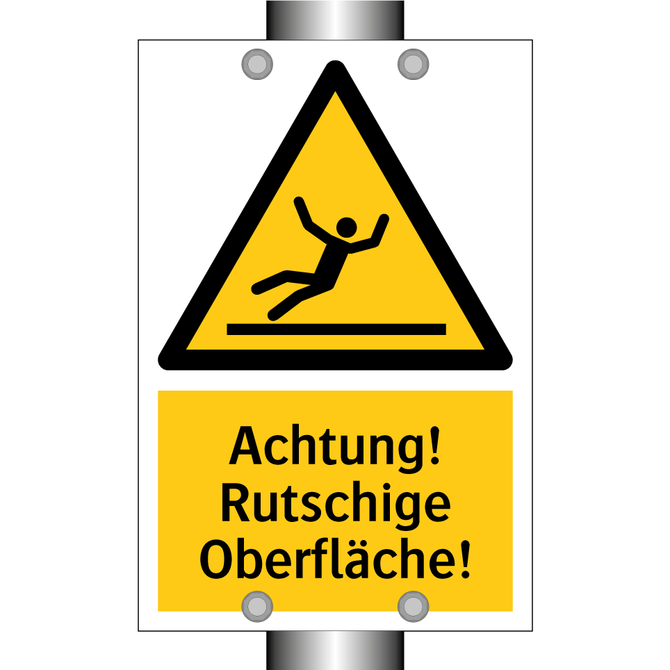 Warnschild mit dem Text Achtung! Rutschige Oberfläche!