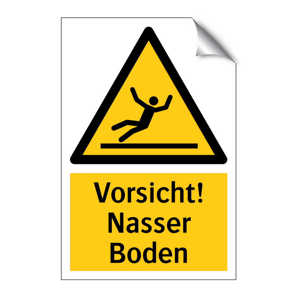 Warnschild mit dem Text Vorsicht! Nasser Boden