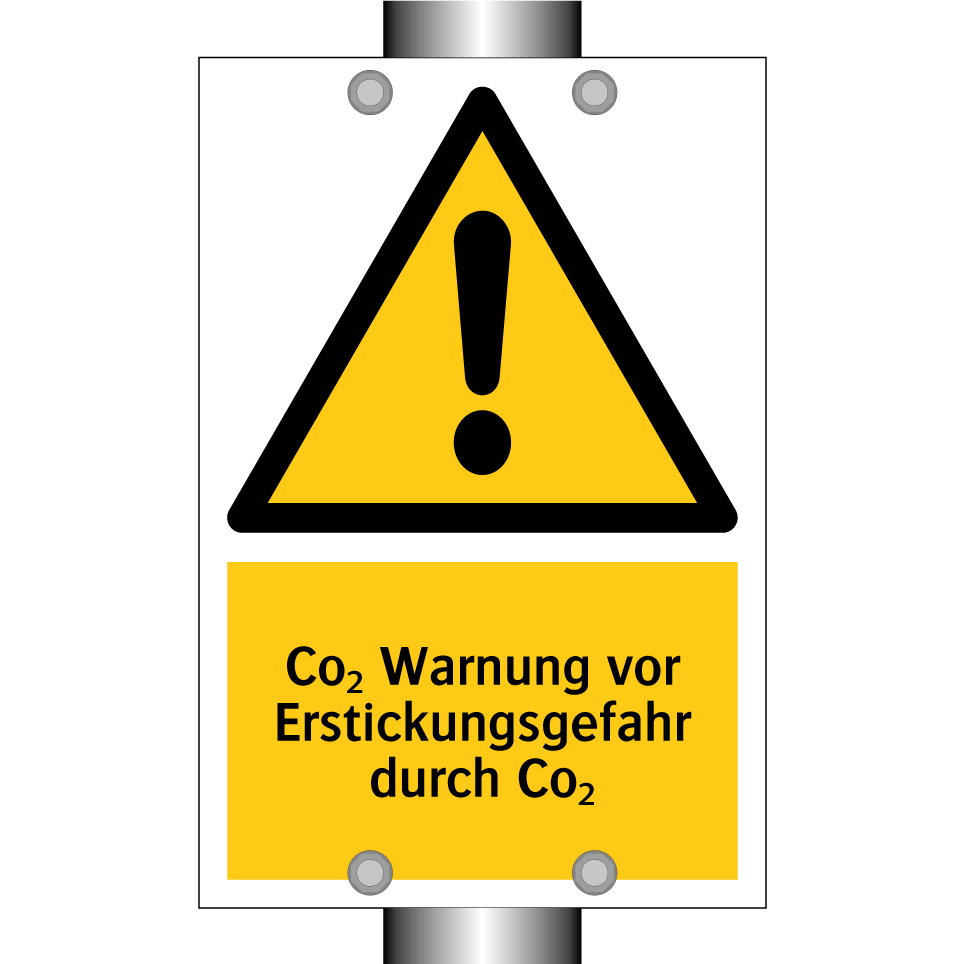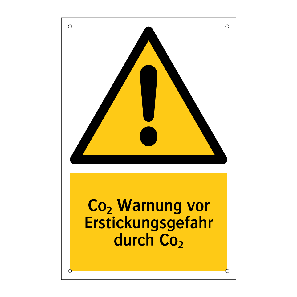Warnschild mit dem Text Co₂ Warnung vor Erstickungsgefahr durch Co₂