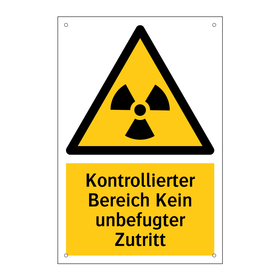 Warnschild mit dem Text Kontrollierter Bereich Kein unbefugter Zutritt