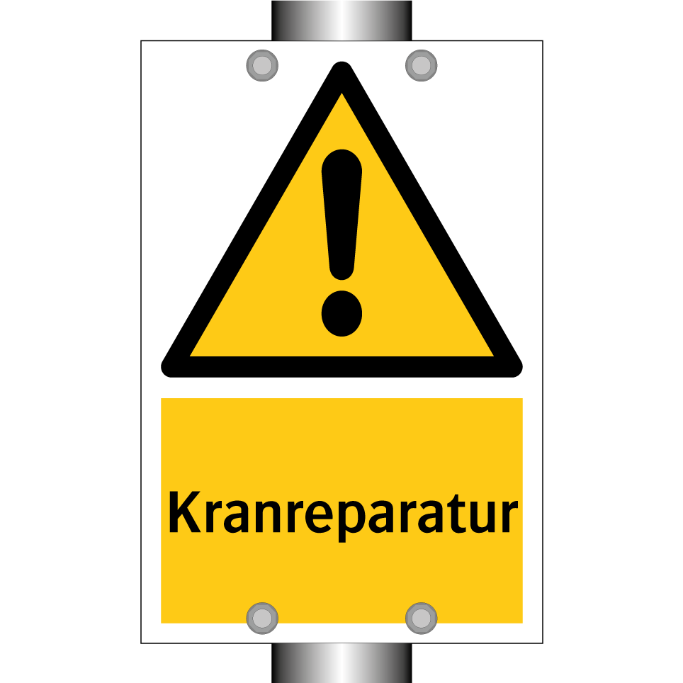 Warnschild mit dem Text Kranreparatur