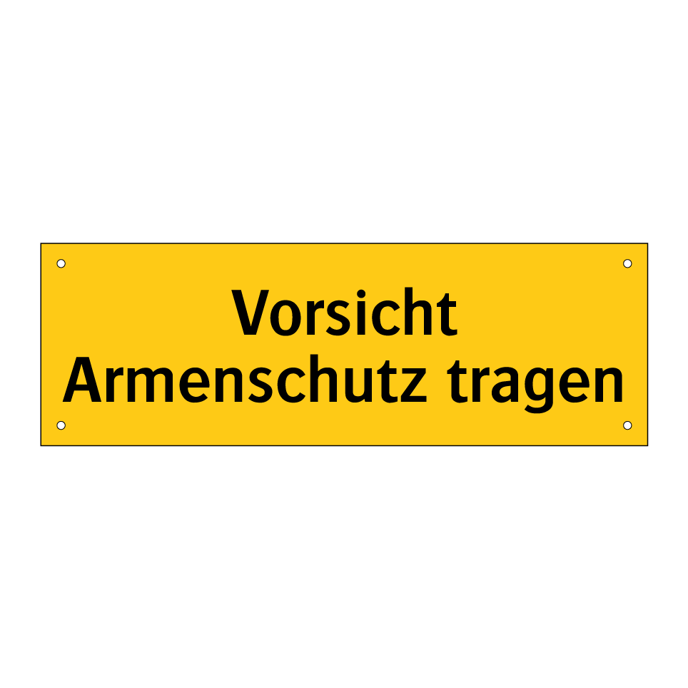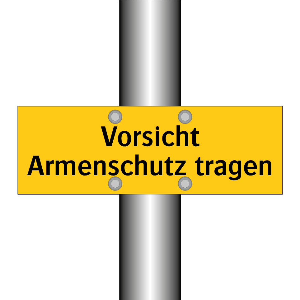 Warnschild mit dem Text Vorsicht Armenschutz tragen