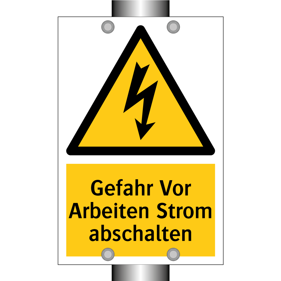 Warnschild mit dem Text Gefahr Vor Arbeiten Strom abschalten