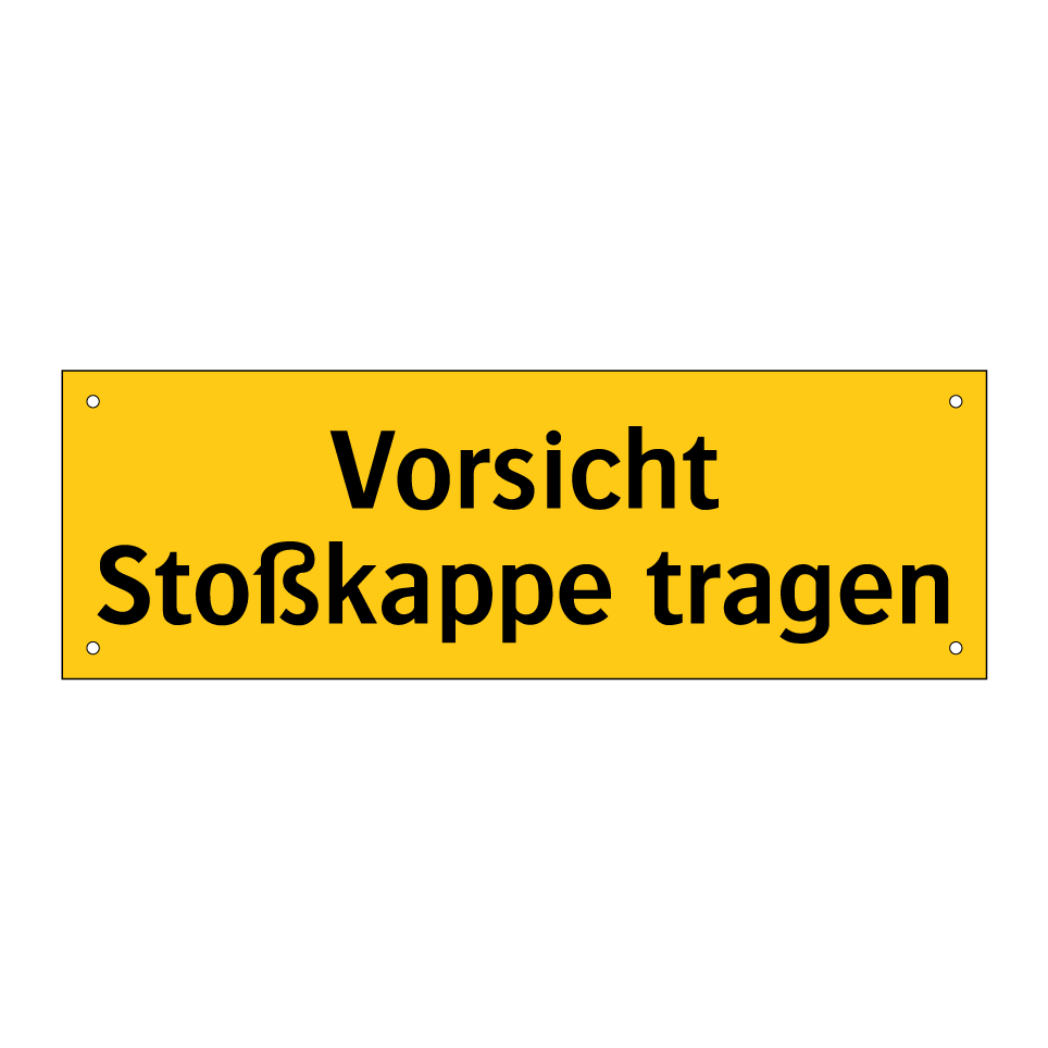 Warnschild mit dem Text Vorsicht Stoßkappe tragen