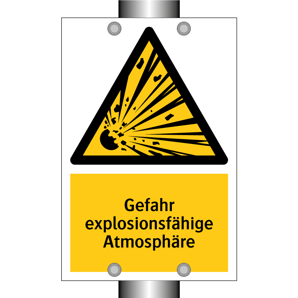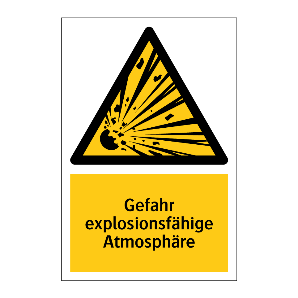Warnschild mit dem Text Gefahr explosionsfähige Atmosphäre
