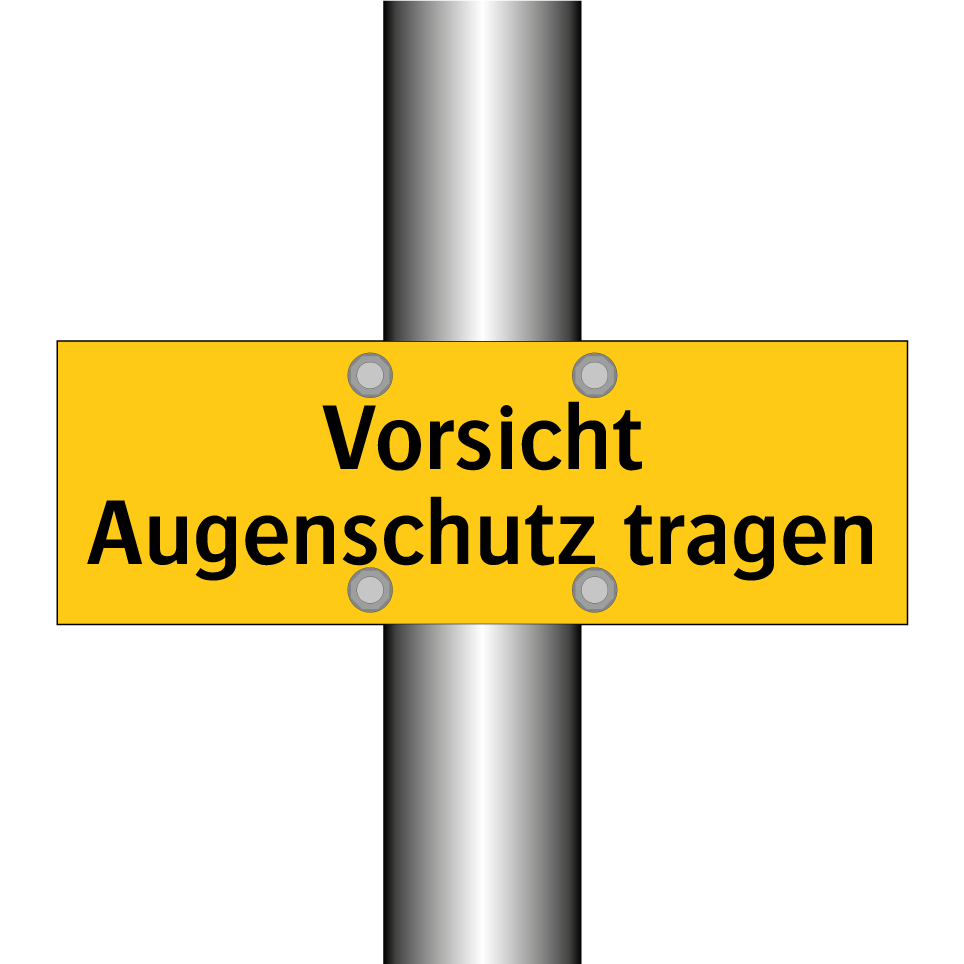 Warnschild mit dem Text Vorsicht Augenschutz tragen