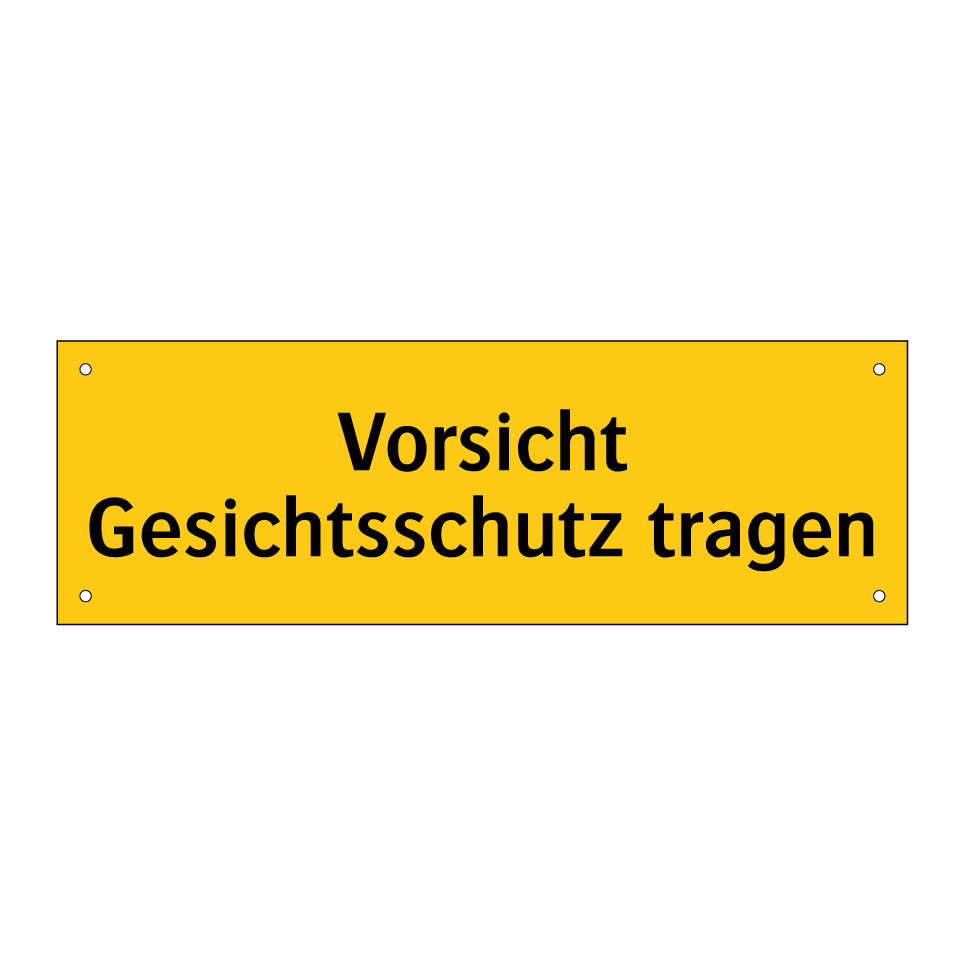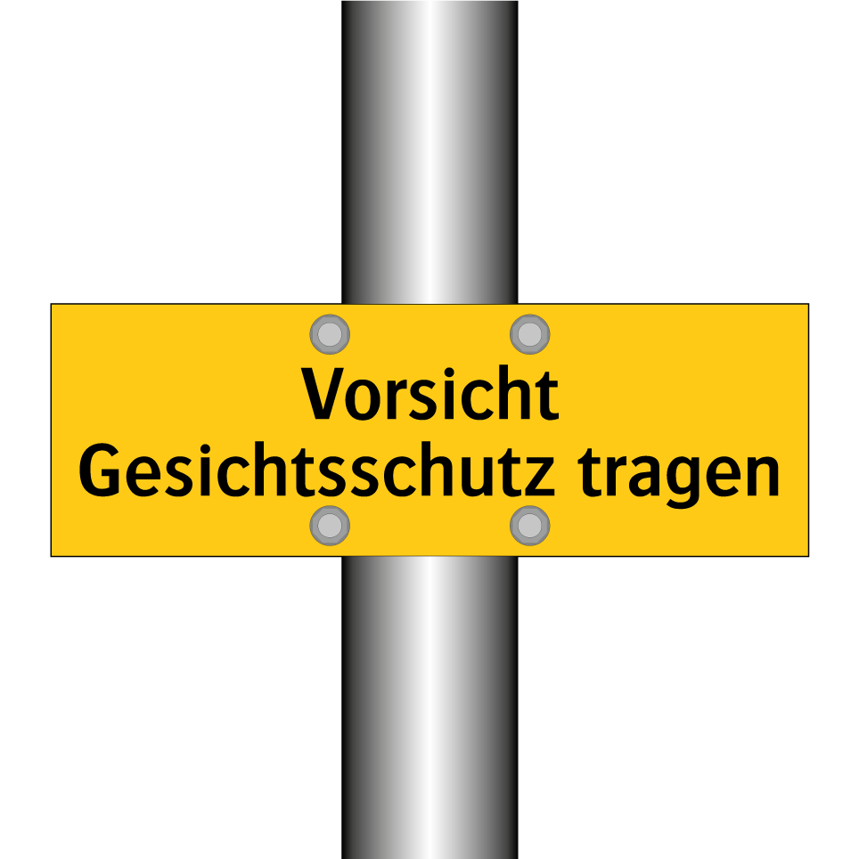 Warnschild mit dem Text Vorsicht Gesichtsschutz tragen
