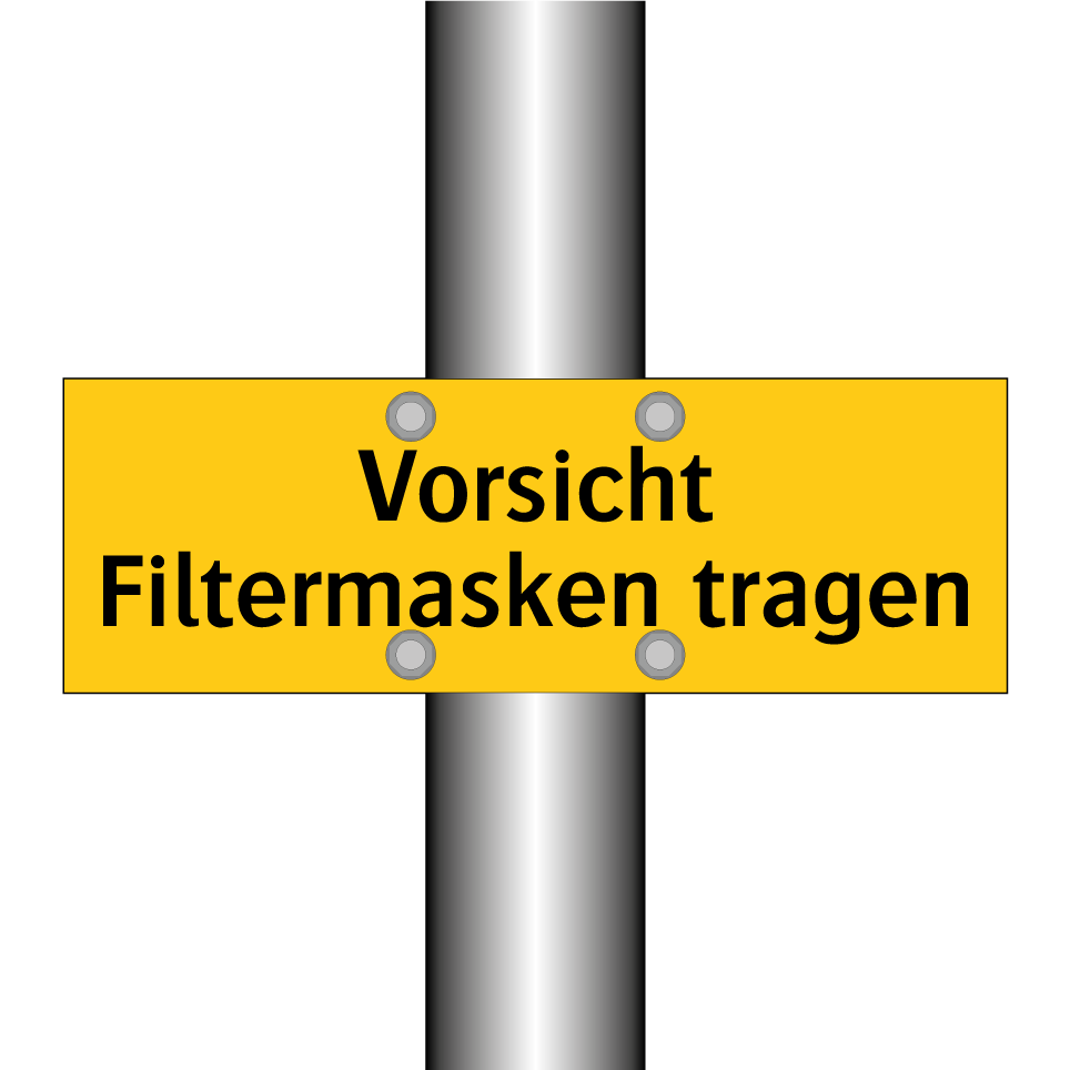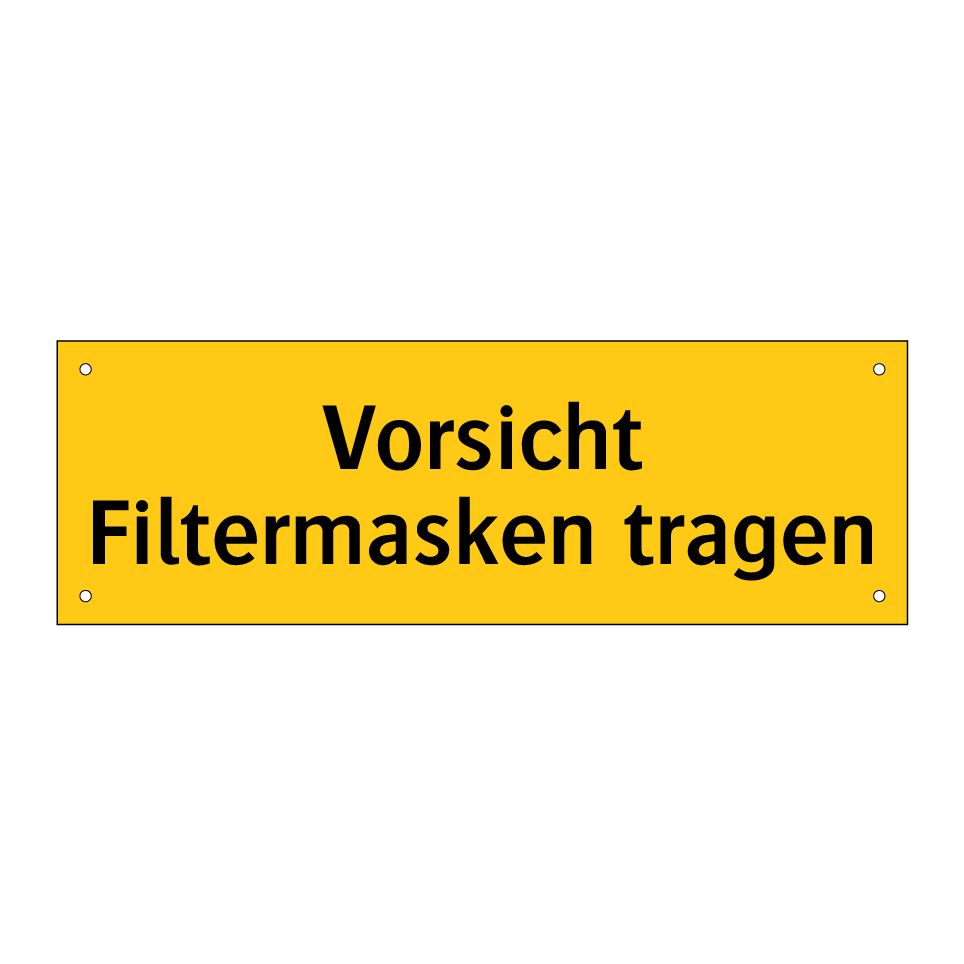 Warnschild mit dem Text Vorsicht Filtermasken tragen