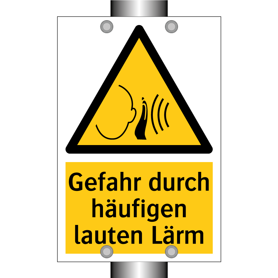 Warnschild mit dem Text Gefahr durch häufigen lauten Lärm