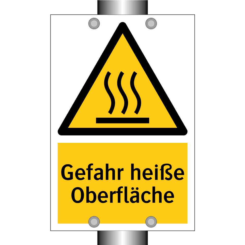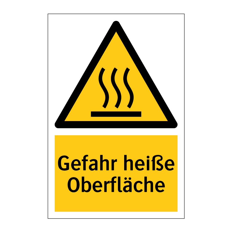 Warnschild mit dem Text Gefahr heiße Oberfläche