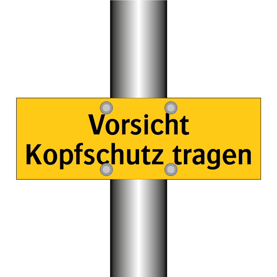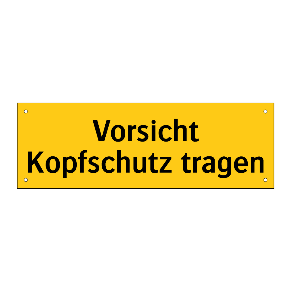 Warnschild mit dem Text Vorsicht Kopfschutz tragen