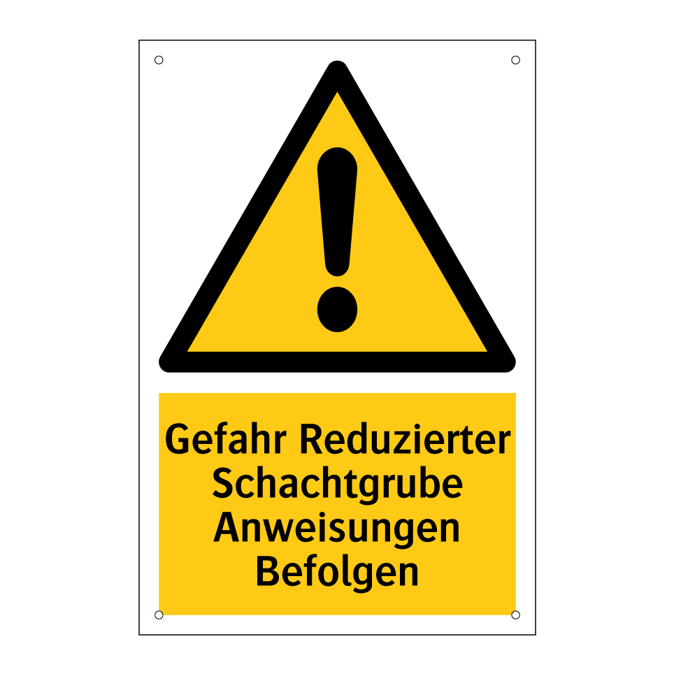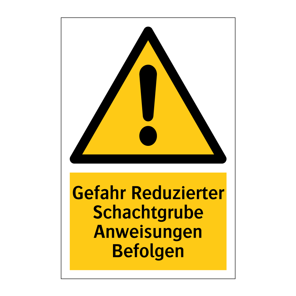 Warnschild mit dem Text Gefahr Reduzierter Schachtgrube Anweisungen Befolgen