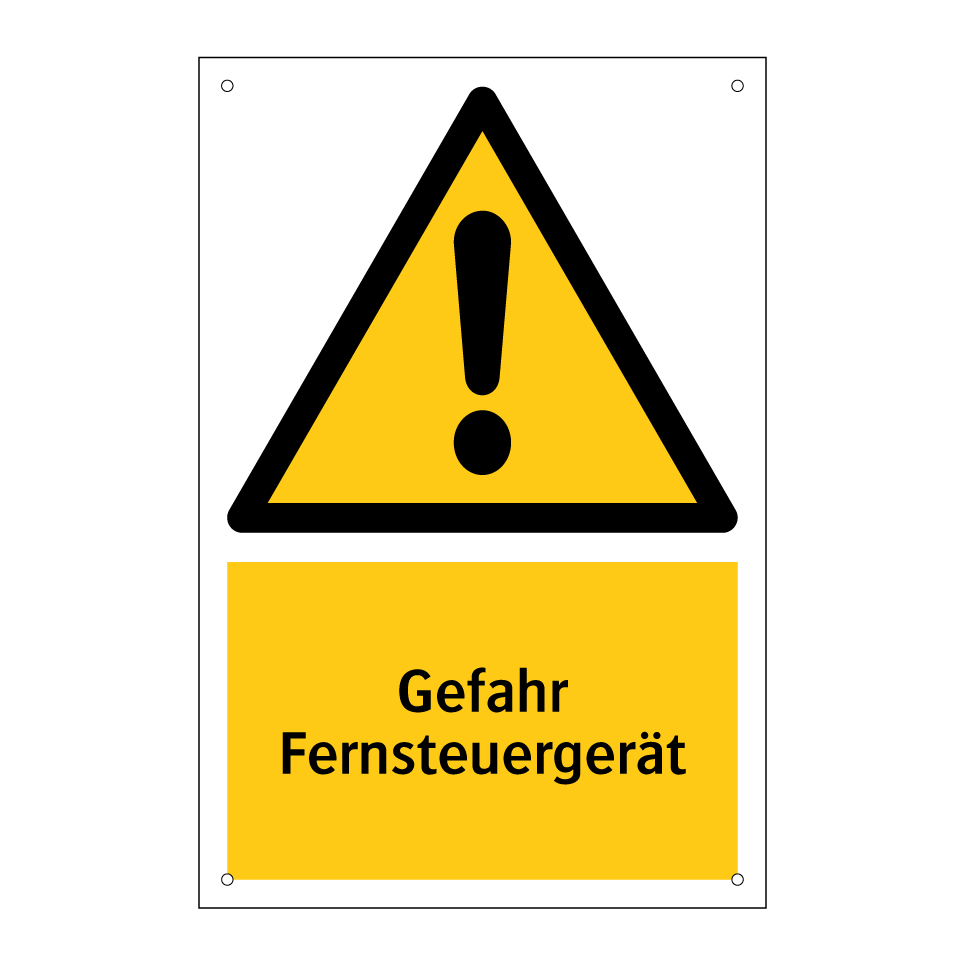 Warnschild mit dem Text Gefahr Fernsteuergerät