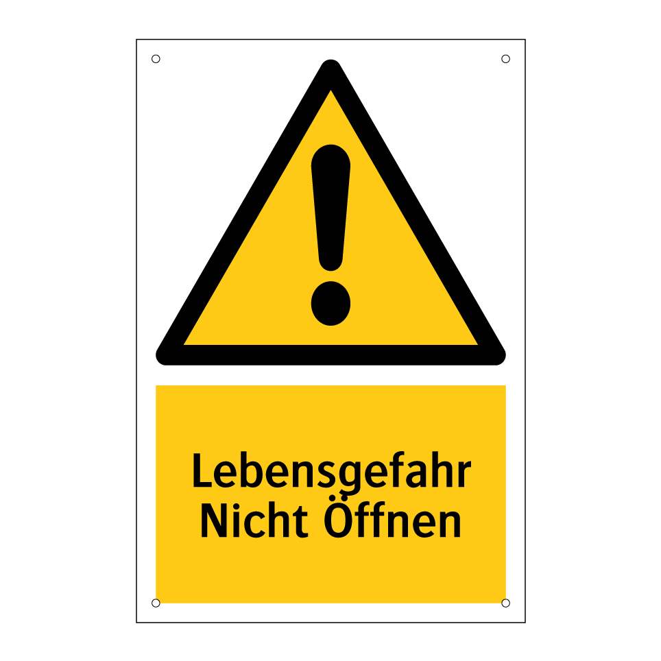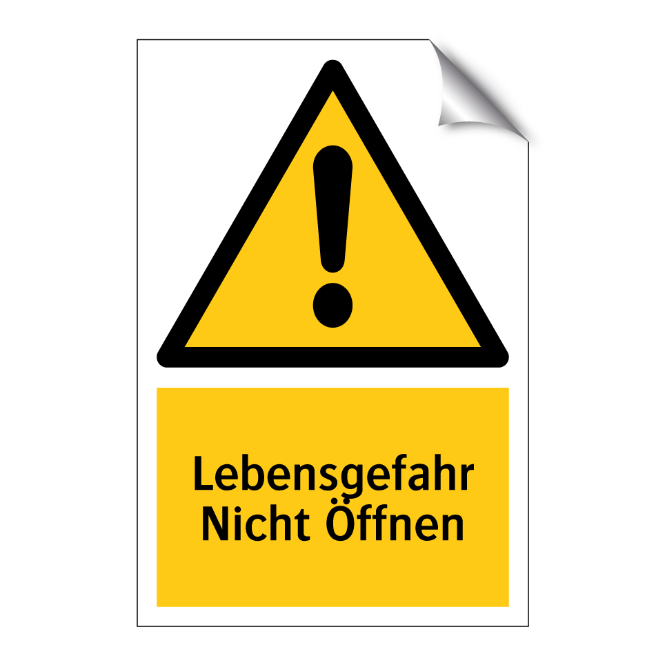 Warnschild mit dem Text Lebensgefahr Nicht Öffnen