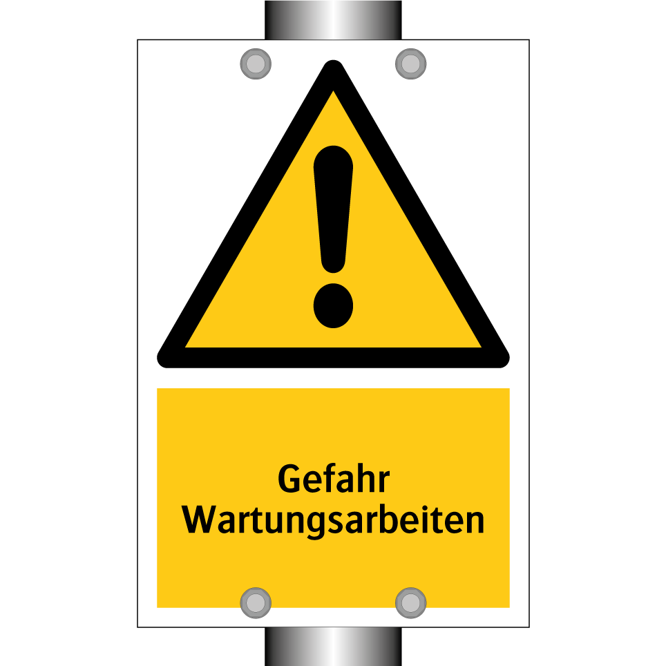Warnschild mit dem Text Gefahr Wartungsarbeiten
