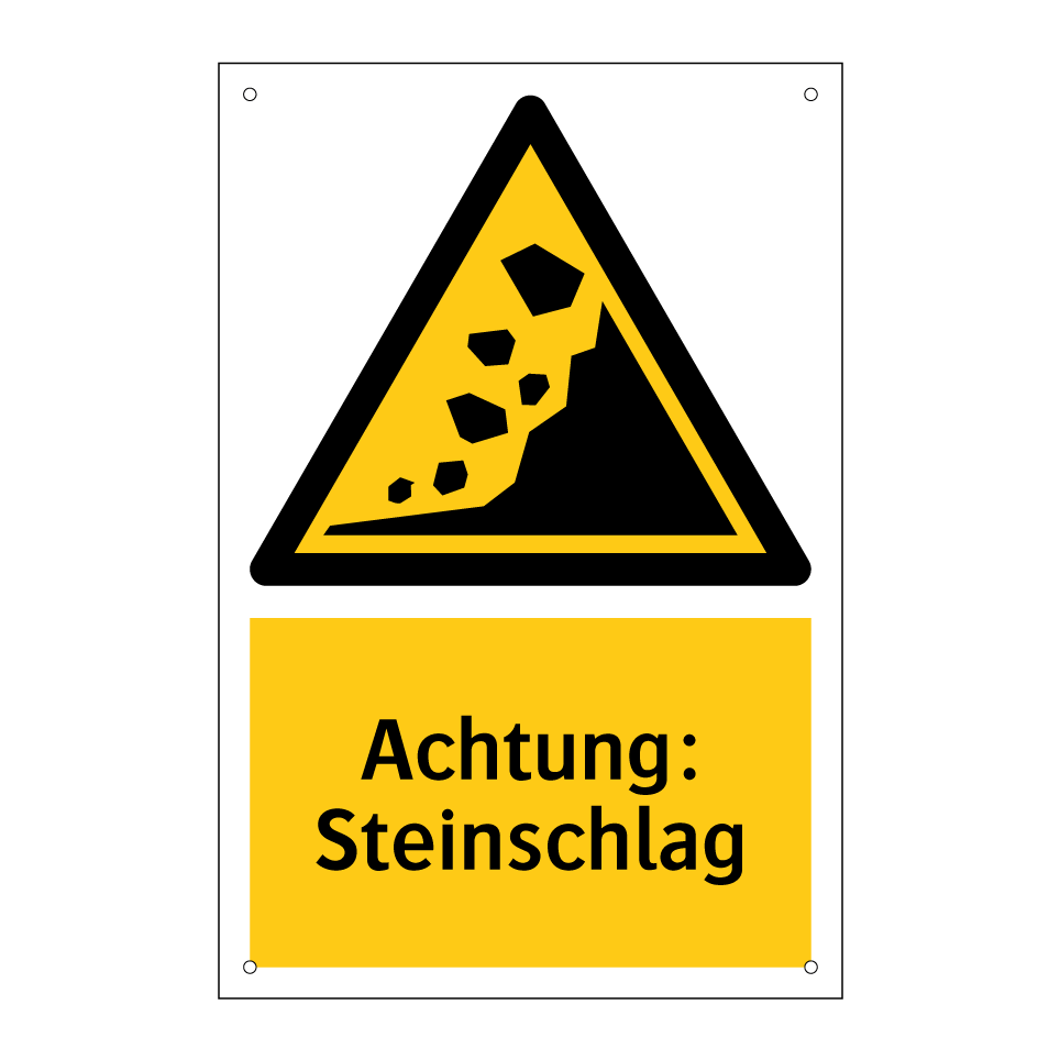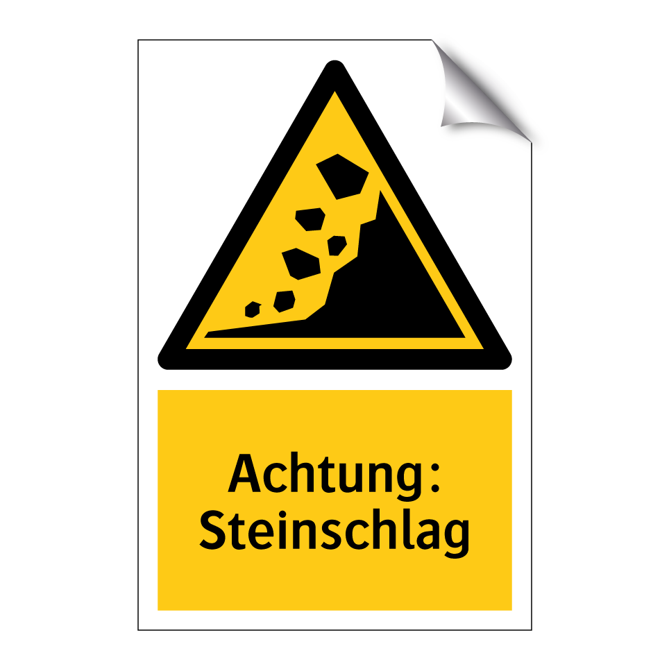 Diese Warnschild mit gelbem Hintergrund und schwarzem Text ist ideal, um auf potenzielle Gefahren durch herabfallende Steine hinzuweisen. Perfekt geeignet für den Einsatz in bergigen Regionen, an Baustellen oder in steilen Geländebereichen, wo die Gefahr von Steinschlag besteht. Die auffällige Symbolik sorgt dafür, dass die Warnung nicht übersehen wird und trägt zur Sicherheit von Passanten und Arbeitern bei. Platzieren Sie das Warnschild an gut sichtbaren Stellen, um effektiv auf die Gefahr aufmerksam zu machen und Unfälle zu vermeiden. Ein unverzichtbares Sicherheitsmerkmal für gefährdete Gebiete.