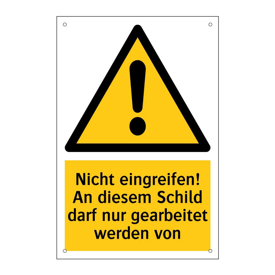 Warnschild mit dem Text Nicht eingreifen! An diesem Schild darf nur gearbeitet werden von