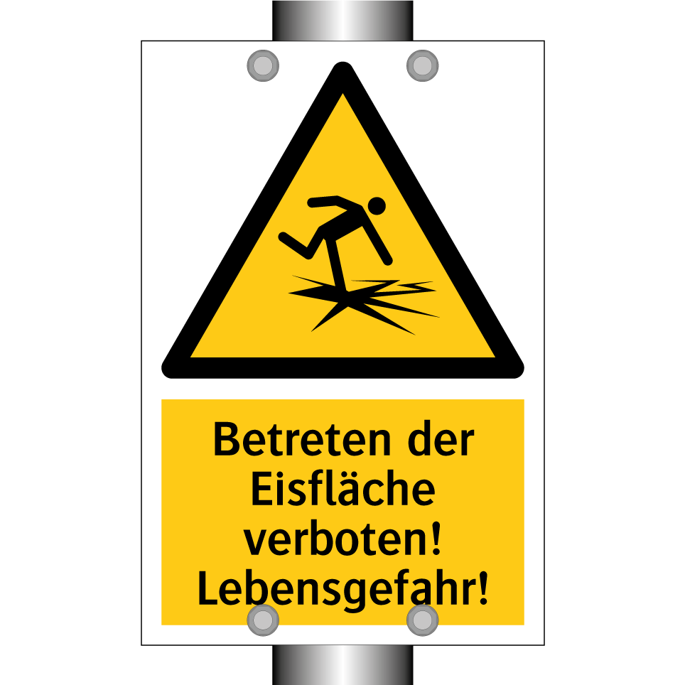 Warnschild mit dem Text Betreten der Eisfläche verboten! Lebensgefahr!