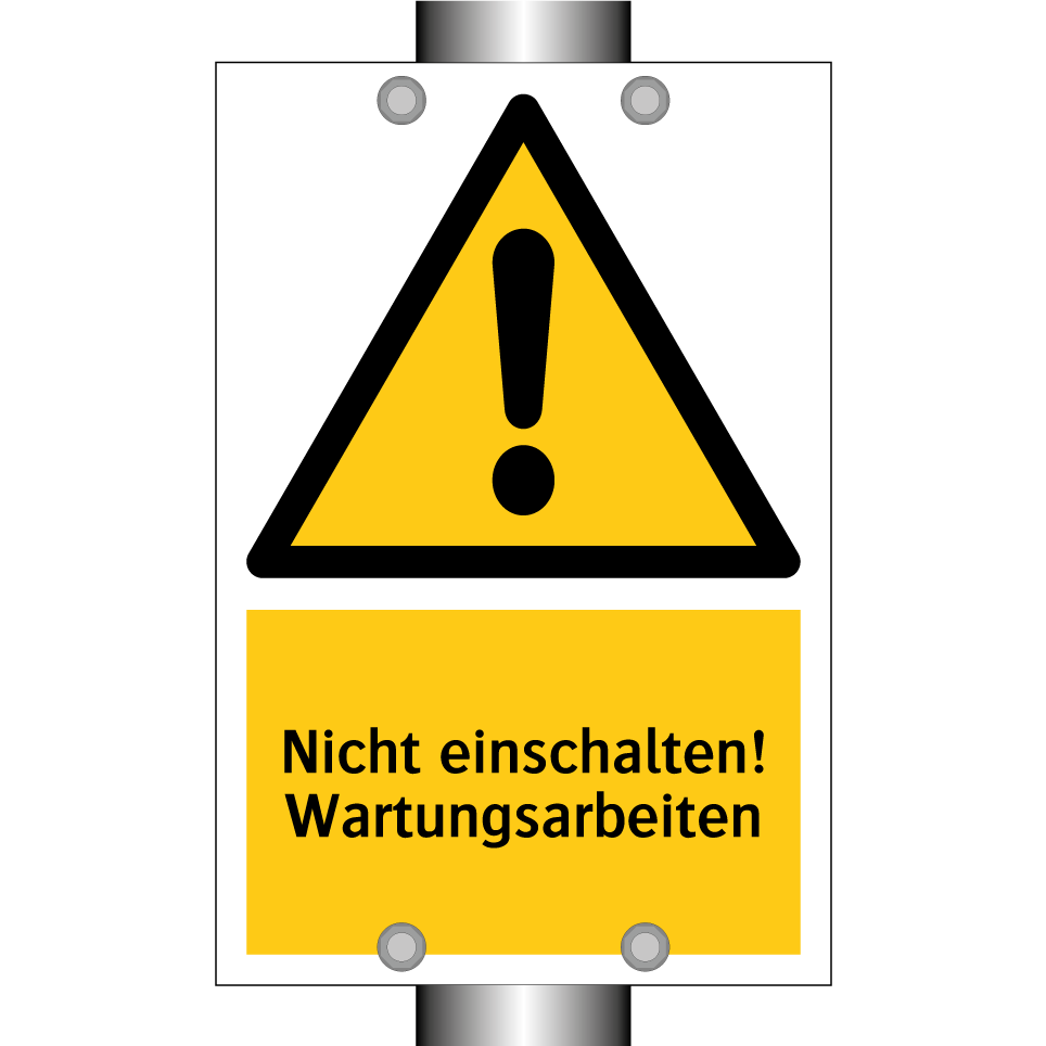 Diese auffällige Warnschild mit gelbem Hintergrund und schwarzer Schrift ist ideal für den Einsatz in Bereichen, in denen Wartungsarbeiten durchgeführt werden. Es dient dazu, Personen darauf hinzuweisen, dass das Einschalten von Maschinen oder Geräten während der Wartung gefährlich ist. Platzieren Sie dieses Warnschild an gut sichtbaren Stellen wie Maschinenräumen, Werkstätten oder Produktionsanlagen, um die Sicherheit zu gewährleisten. Die klare Symbolik und der prägnante Text machen es einfach, die Botschaft schnell zu erfassen. Nutzen Sie dieses Warnschild, um Unfälle zu vermeiden und die Aufmerksamkeit auf wichtige Sicherheitsmaßnahmen zu lenken.