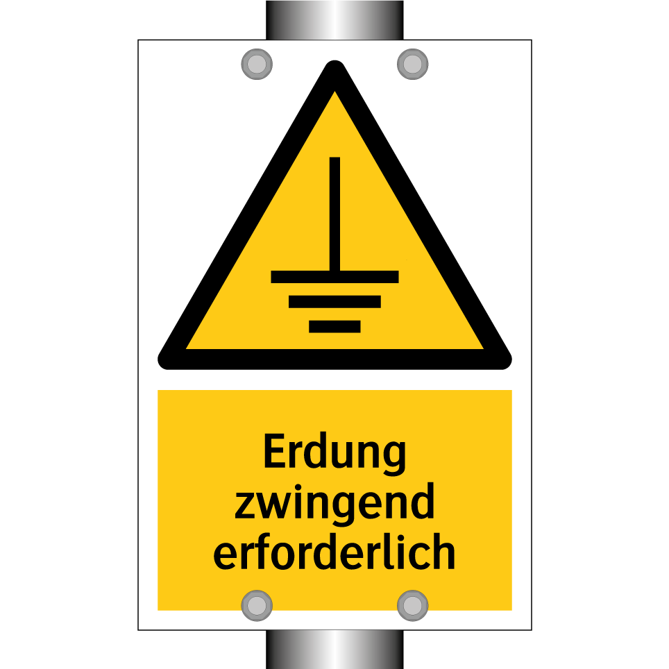 Warnschild mit dem Text Erdung zwingend erforderlich
