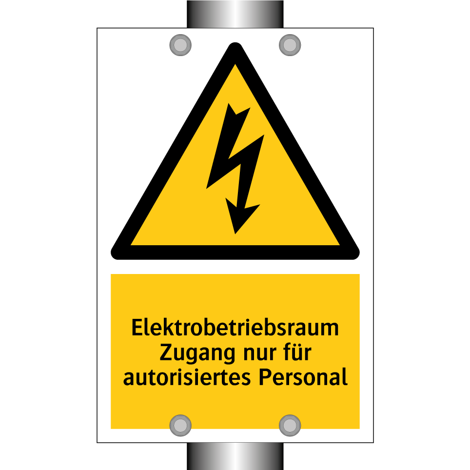 Warnschild mit dem Text Elektrobetriebsraum Zugang nur für autorisiertes Personal