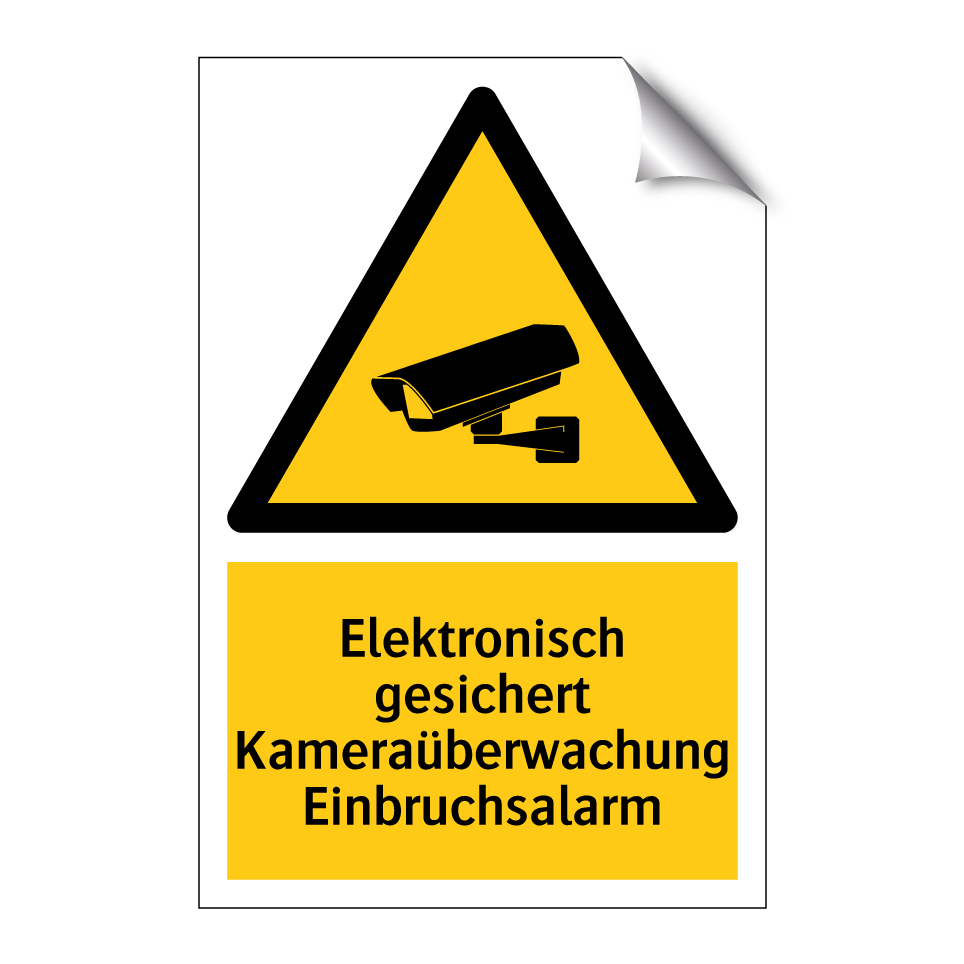 Warnschild mit dem Text Elektronisch gesichert Kameraüberwachung Einbruchsalarm