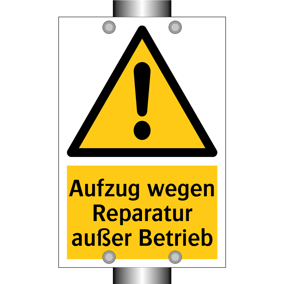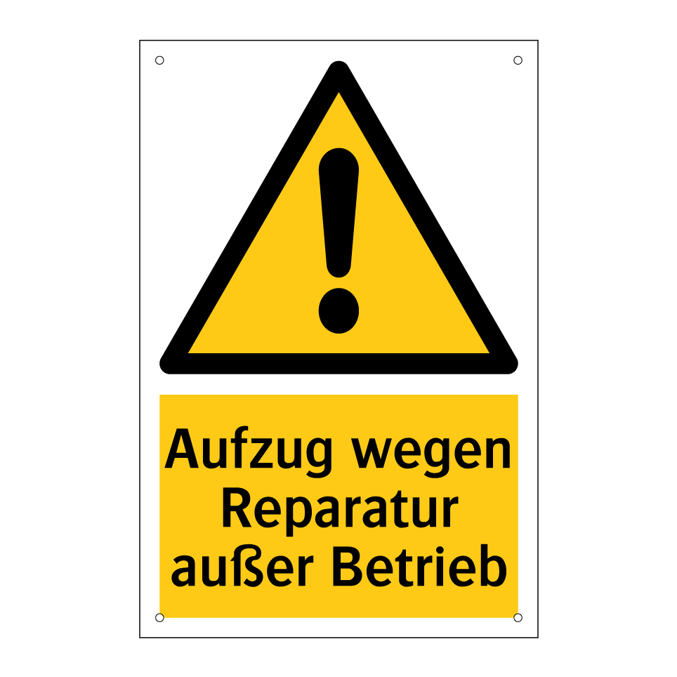 Warnschild mit dem Text Aufzug wegen Reparatur außer Betrieb