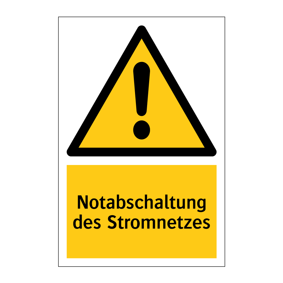 Warnschild mit dem Text Notabschaltung des Stromnetzes