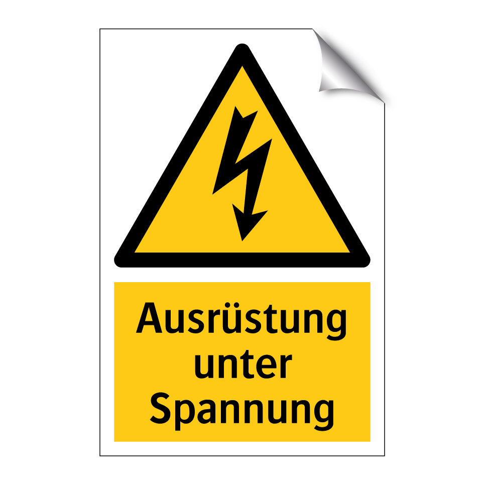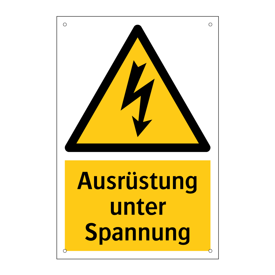 Warnschild mit dem Text Ausrüstung unter Spannung
