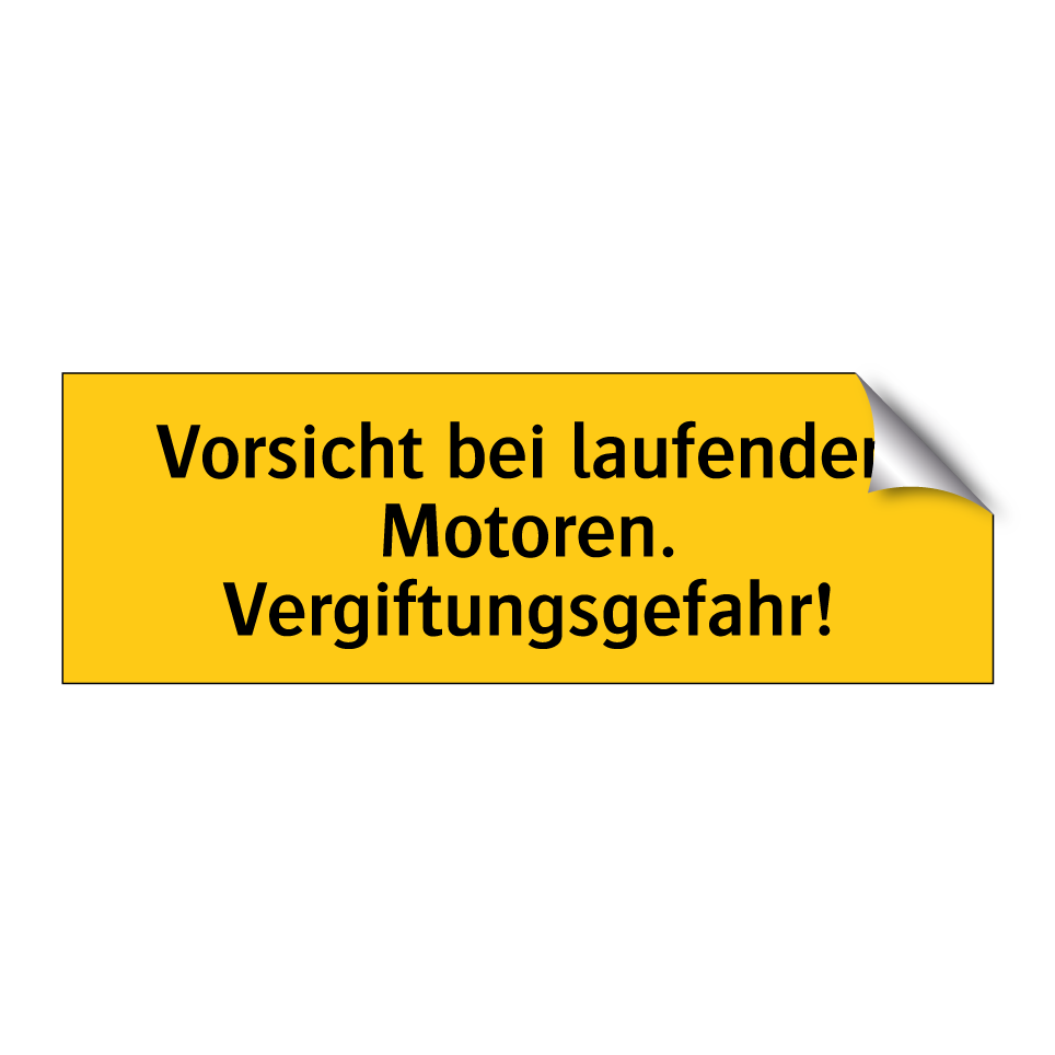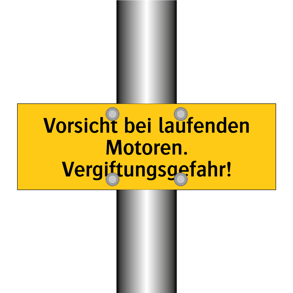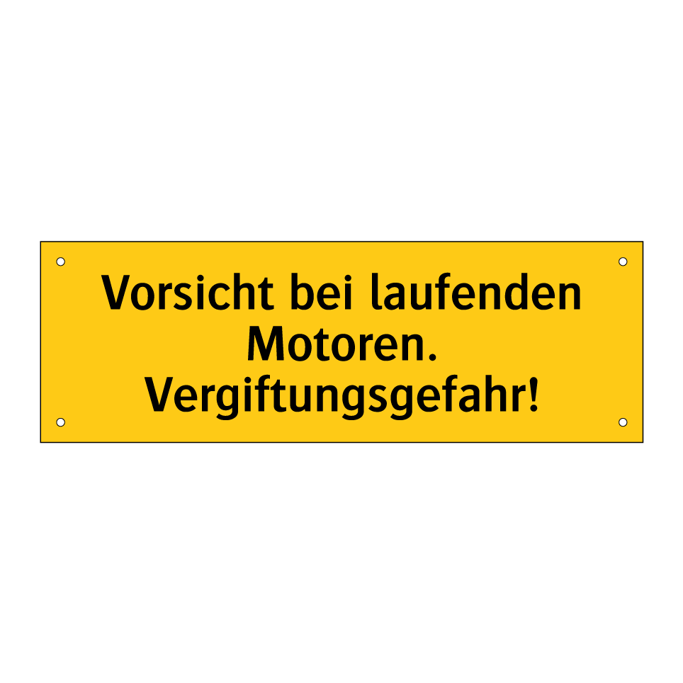 Warnschild mit dem Text Vorsicht bei laufenden Motoren. Vergiftungsgefahr!