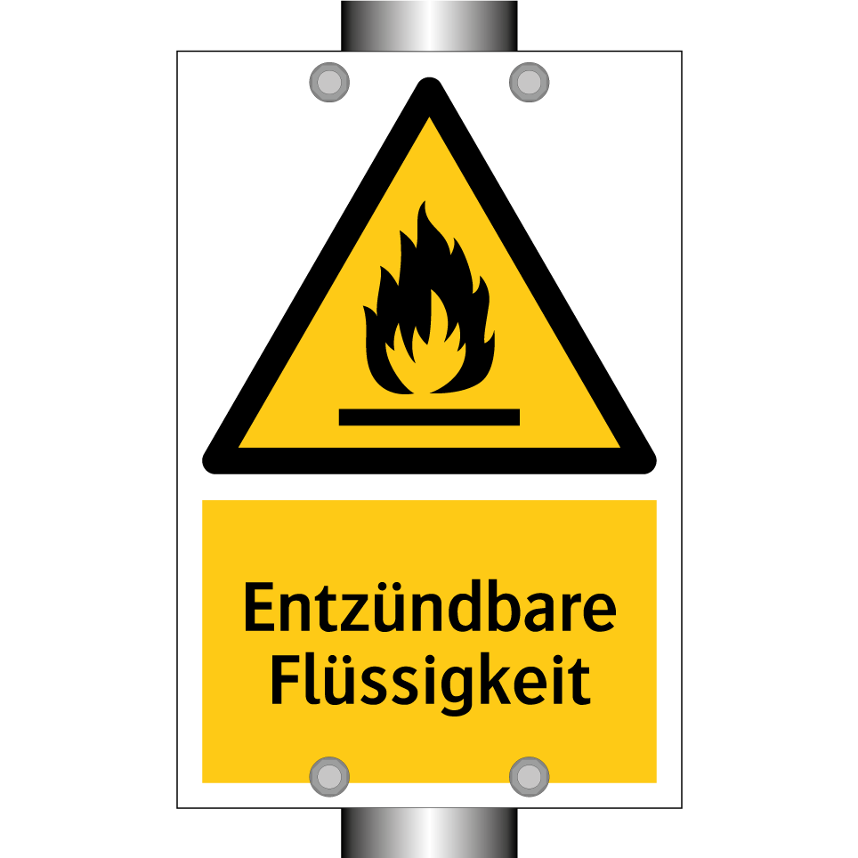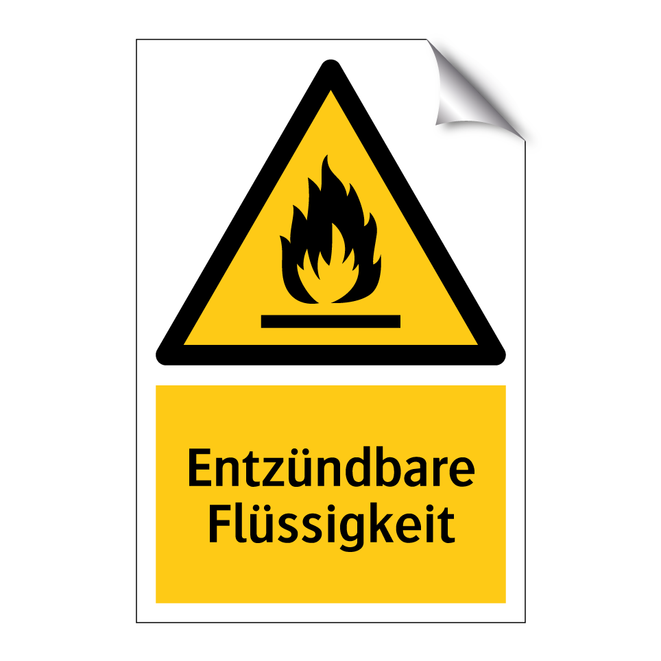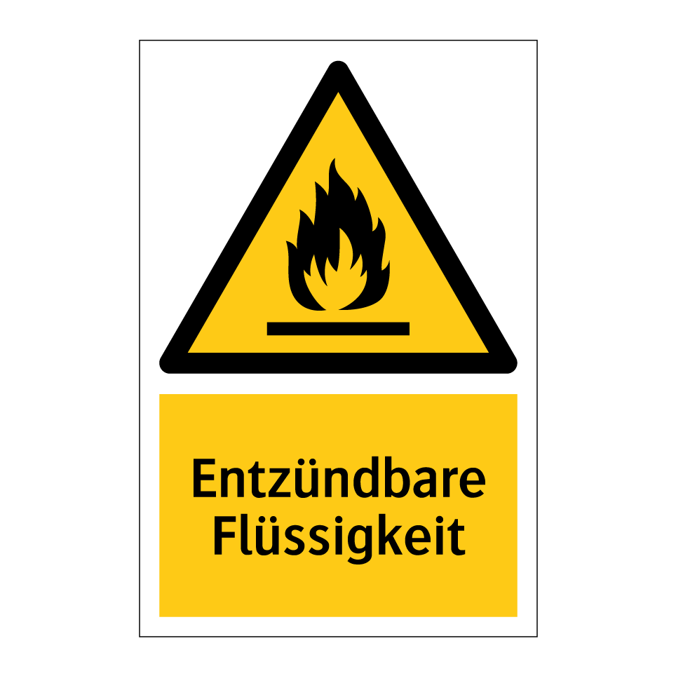 Warnschild mit dem Text Entzündbare Flüssigkeit