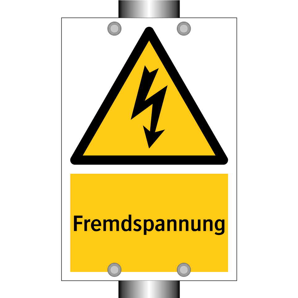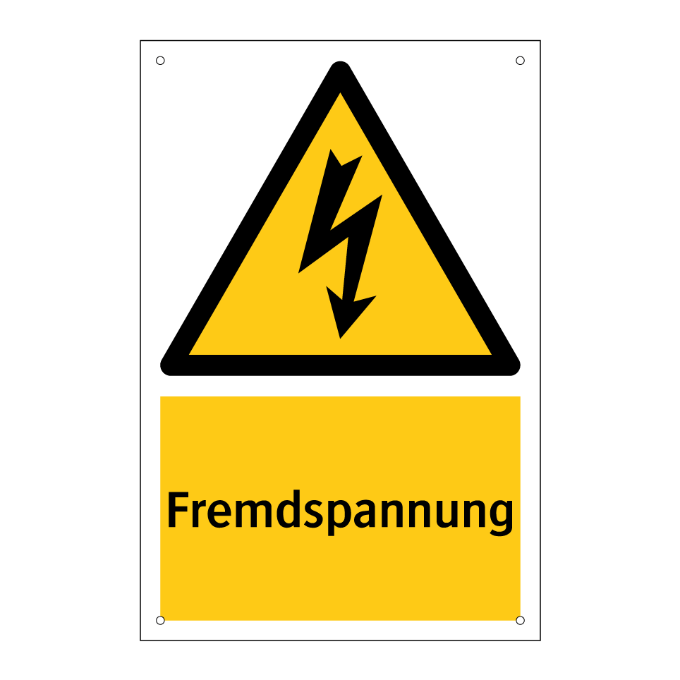 Warnschild mit dem Text Fremdspannung