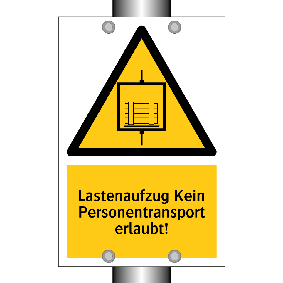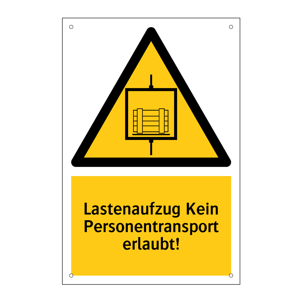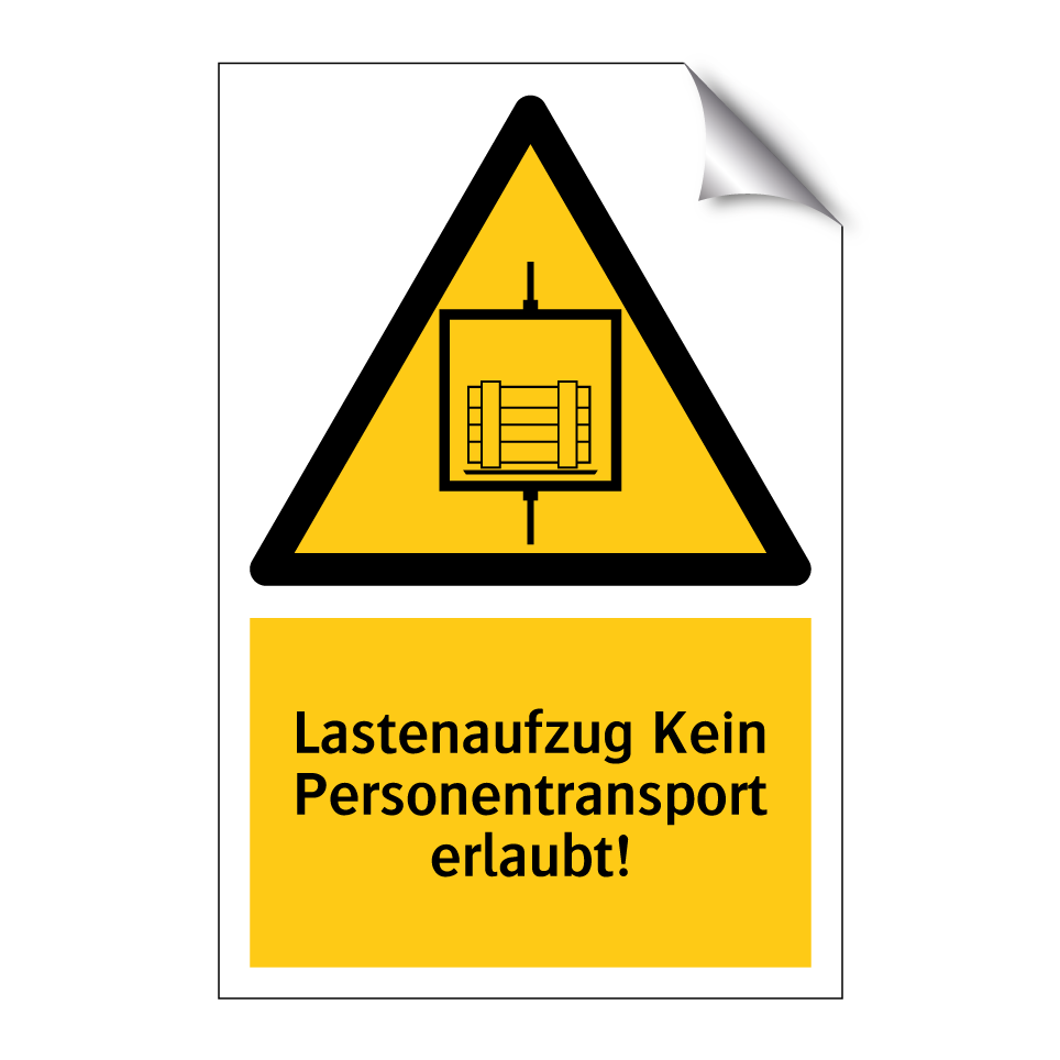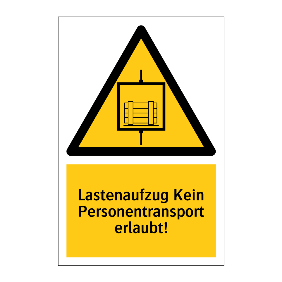 Diese auffällige Warnschild mit gelbem Hintergrund und schwarzem Text ist ideal für den Einsatz in Bereichen, in denen Lastenaufzüge betrieben werden. Sie dient dazu, Personen darauf hinzuweisen, dass der Aufzug ausschließlich für den Transport von Gütern vorgesehen ist und nicht für den Personentransport genutzt werden darf. Platzieren Sie diese Warnschilder gut sichtbar in der Nähe von Aufzugstüren oder in Lagerhäusern, um die Sicherheit zu gewährleisten und Unfälle zu vermeiden. Diese Warnung ist besonders wichtig in Industriegebäuden, Fabriken und Lagerhallen, wo der Einsatz von Lastenaufzügen häufig vorkommt. Sorgen Sie für klare Kommunikation und erhöhen Sie die Sicherheit mit dieser effektiven Warnschild.