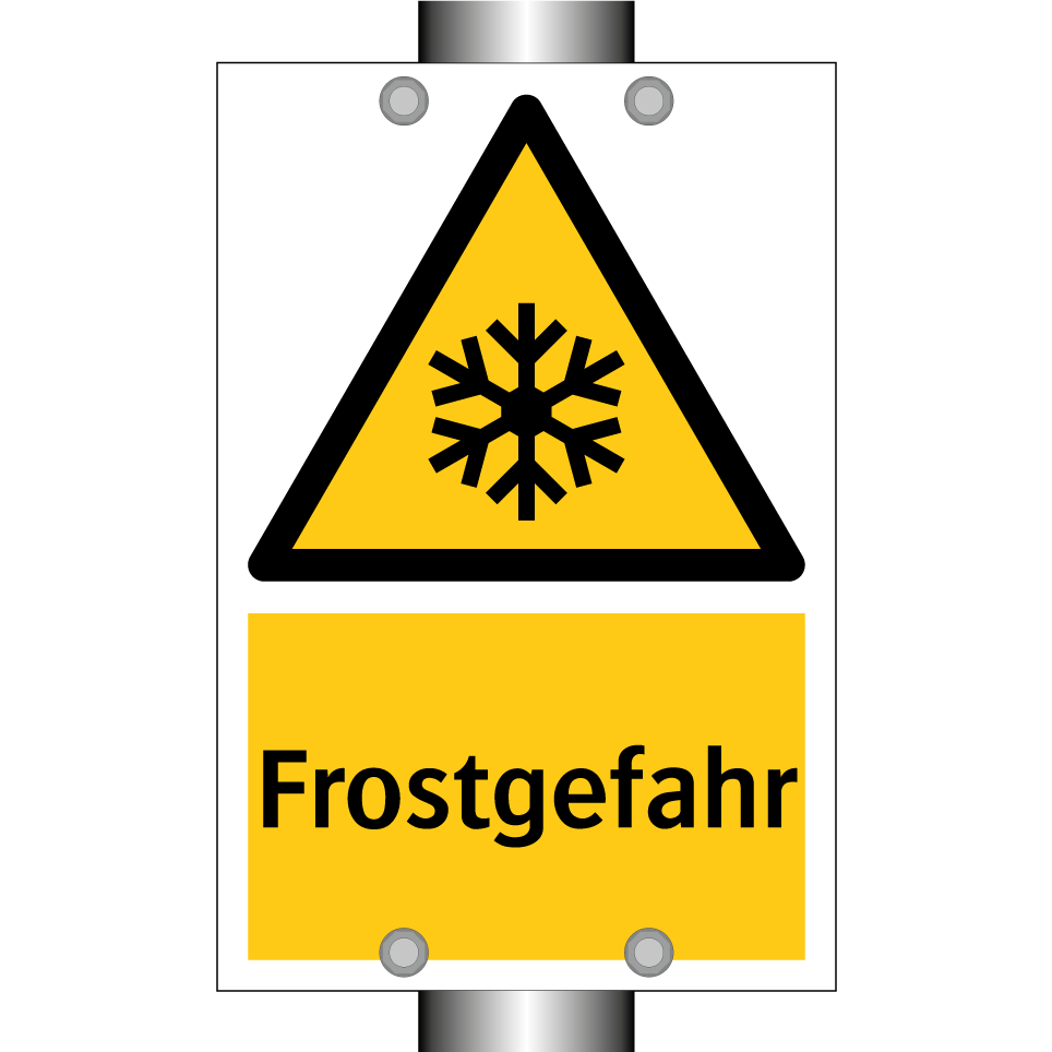 Diese auffällige Warnschild mit gelbem Hintergrund und schwarzer Schrift ist ideal, um auf die Gefahr von Frost hinzuweisen. Sie eignet sich hervorragend für den Einsatz in Bereichen, in denen niedrige Temperaturen ein Risiko darstellen können, wie z.B. auf Gehwegen, in Lagerhallen oder auf Parkplätzen. Die klare Symbolik und die prägnante Botschaft sorgen dafür, dass die Warnung nicht übersehen wird. Platzieren Sie diese Warnschilder an strategischen Punkten, um Passanten und Mitarbeiter effektiv vor möglichen Gefahren durch Glätte zu schützen. Ein unverzichtbares Sicherheitsmerkmal für alle, die in frostgefährdeten Zonen tätig sind.
