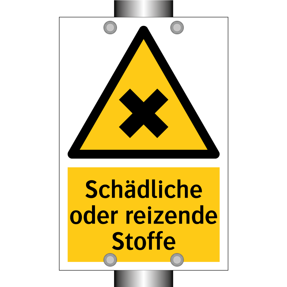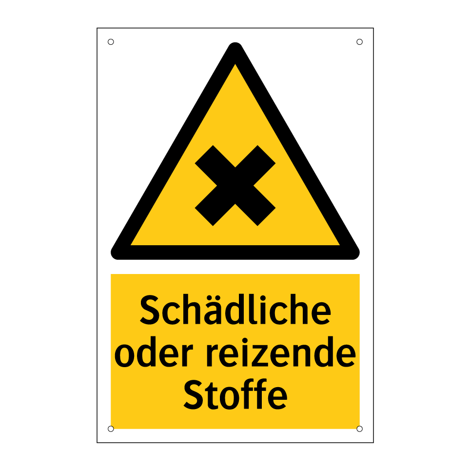 Warnschild mit dem Text Schädliche oder reizende Stoffe