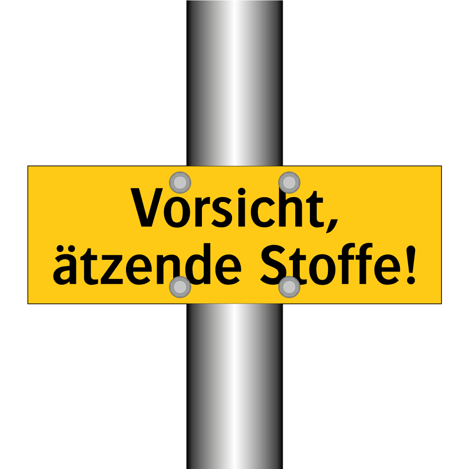 Warnschild mit dem Text Vorsicht, ätzende Stoffe!