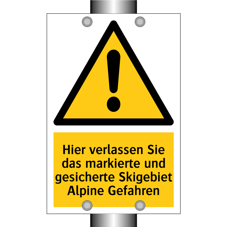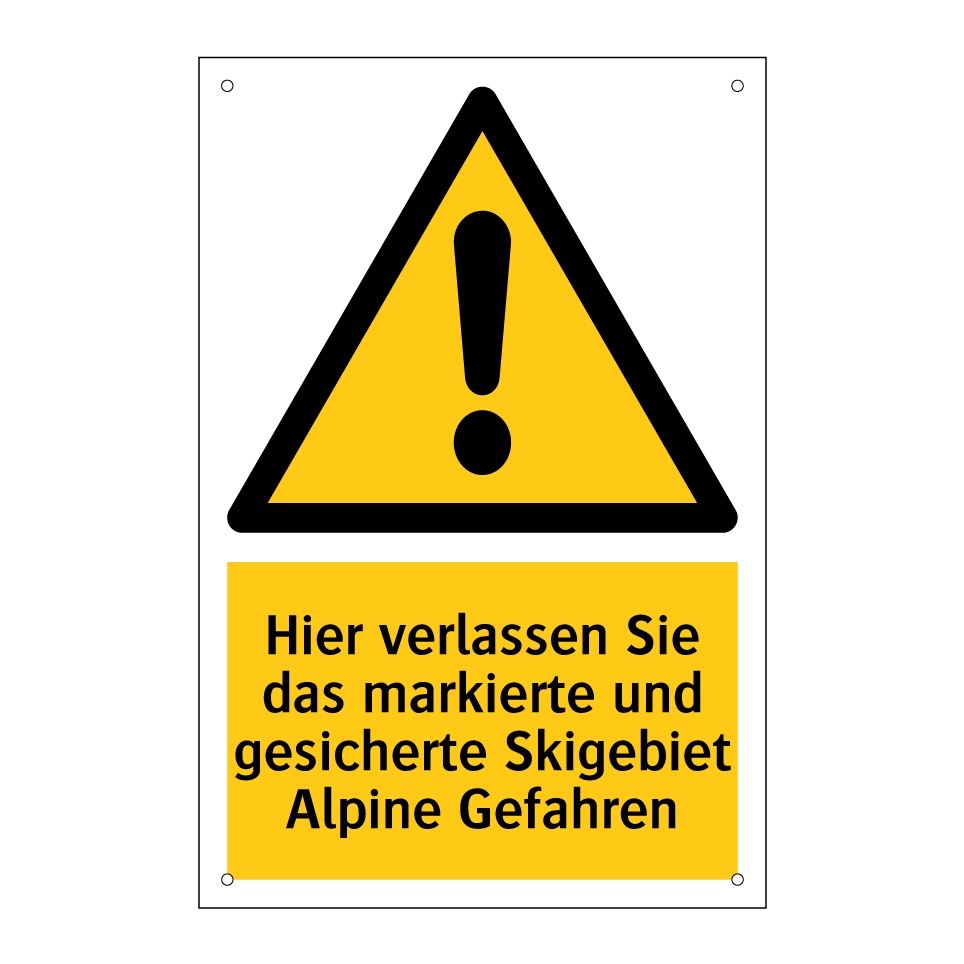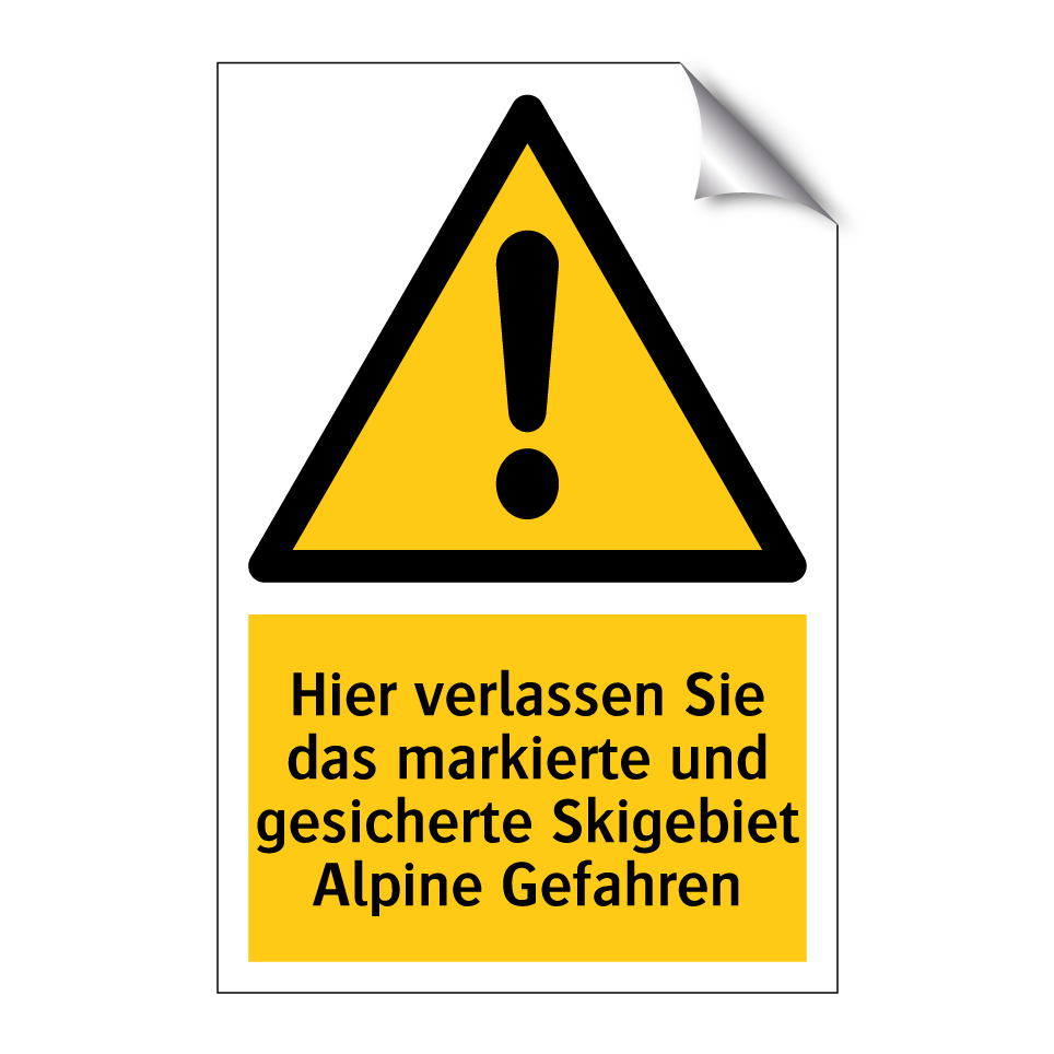 Warnschild mit dem Text Hier verlassen Sie das markierte und gesicherte Skigebiet Alpine Gefahren