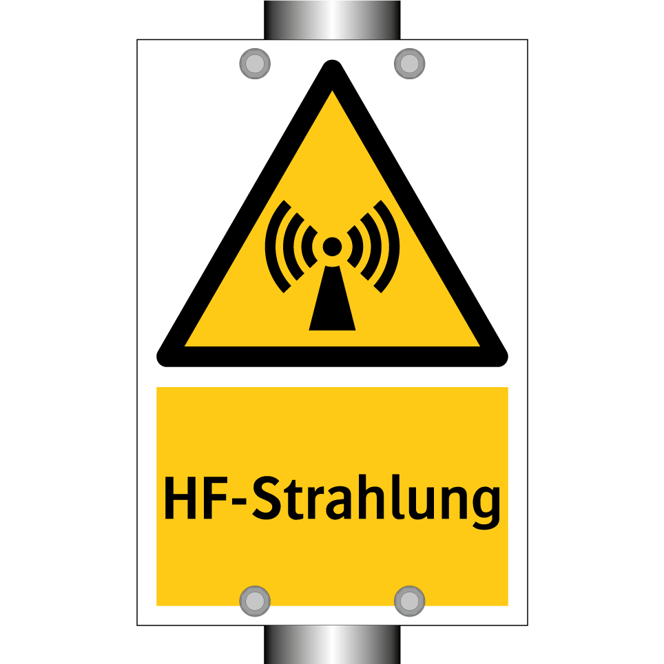 Diese Warnschild mit gelbem Hintergrund und schwarzem Text ist ideal, um auf potenzielle Gefahren durch Hochfrequenzstrahlung hinzuweisen. Perfekt geeignet für industrielle Umgebungen, Laboratorien oder technische Einrichtungen, wo elektromagnetische Strahlung vorkommen kann. Platzieren Sie das Warnschild an gut sichtbaren Stellen wie Eingängen zu Räumen mit Hochfrequenzgeräten oder in der Nähe von Antennenanlagen. Es dient dazu, Mitarbeiter und Besucher auf mögliche Risiken aufmerksam zu machen und ihre Sicherheit zu gewährleisten. Durch die klare Symbolik und die prägnante Botschaft wird die Aufmerksamkeit effektiv auf die Gefahrenquelle gelenkt.