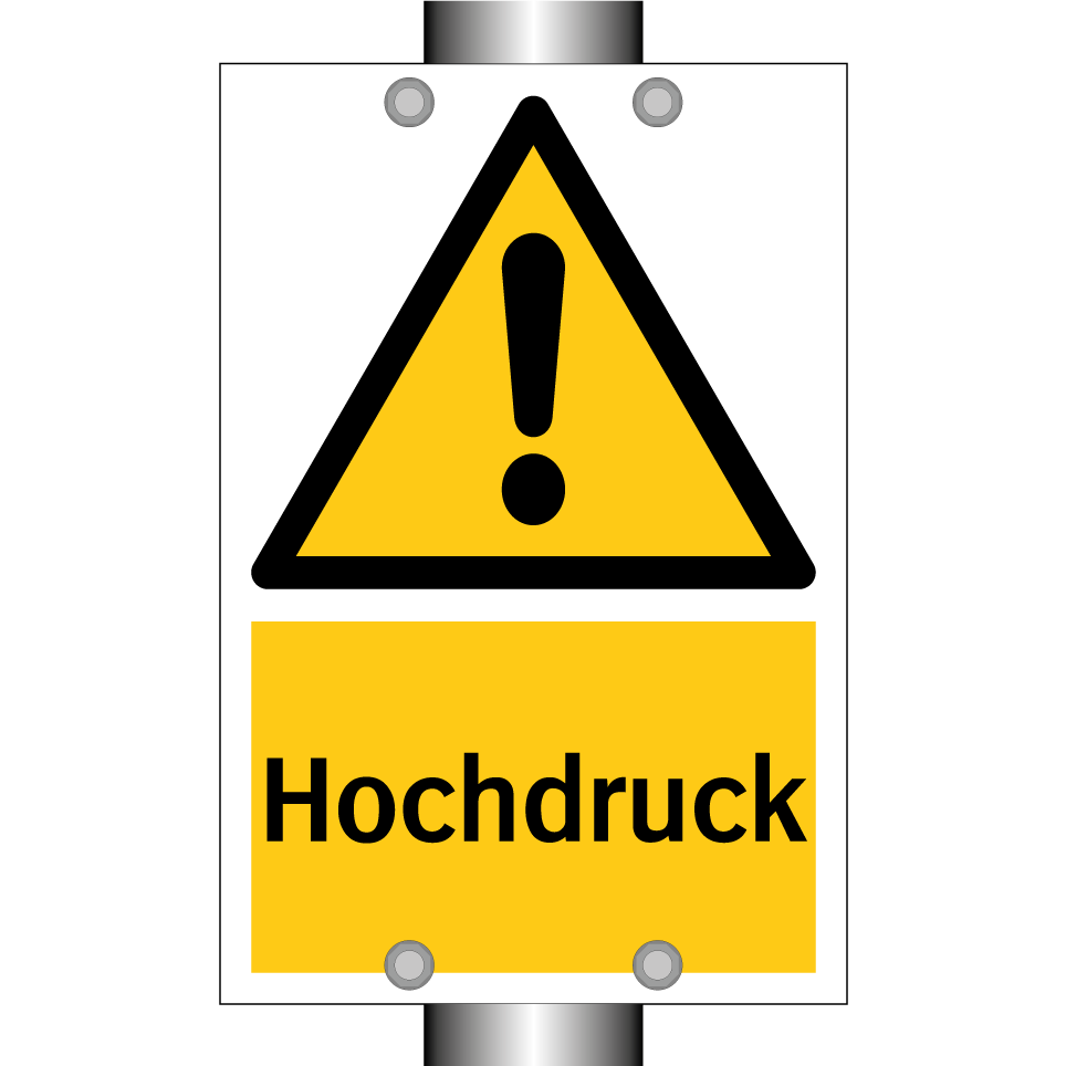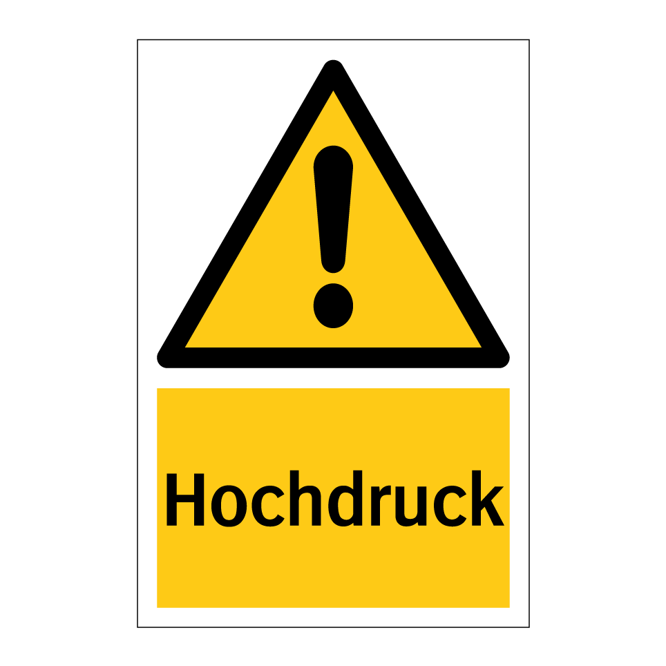 Diese Warnschild mit gelbem Hintergrund und schwarzem Text ist ideal für den Einsatz in Bereichen, in denen auf Hochdruck hingewiesen werden muss. Es eignet sich hervorragend für industrielle Umgebungen, wie Fabriken oder Werkstätten, wo Hochdrucksysteme betrieben werden. Platzieren Sie das Warnschild in der Nähe von Maschinen, Ventilen oder anderen Geräten, um Mitarbeiter und Besucher auf potenzielle Gefahren aufmerksam zu machen. Die klare Symbolik und die auffällige Farbgebung sorgen dafür, dass die Warnung nicht übersehen wird. Diese Warnschilder sind ein unverzichtbares Element für die Sicherheit und den Schutz in jeder Arbeitsumgebung, in der Hochdruck eine Rolle spielt.