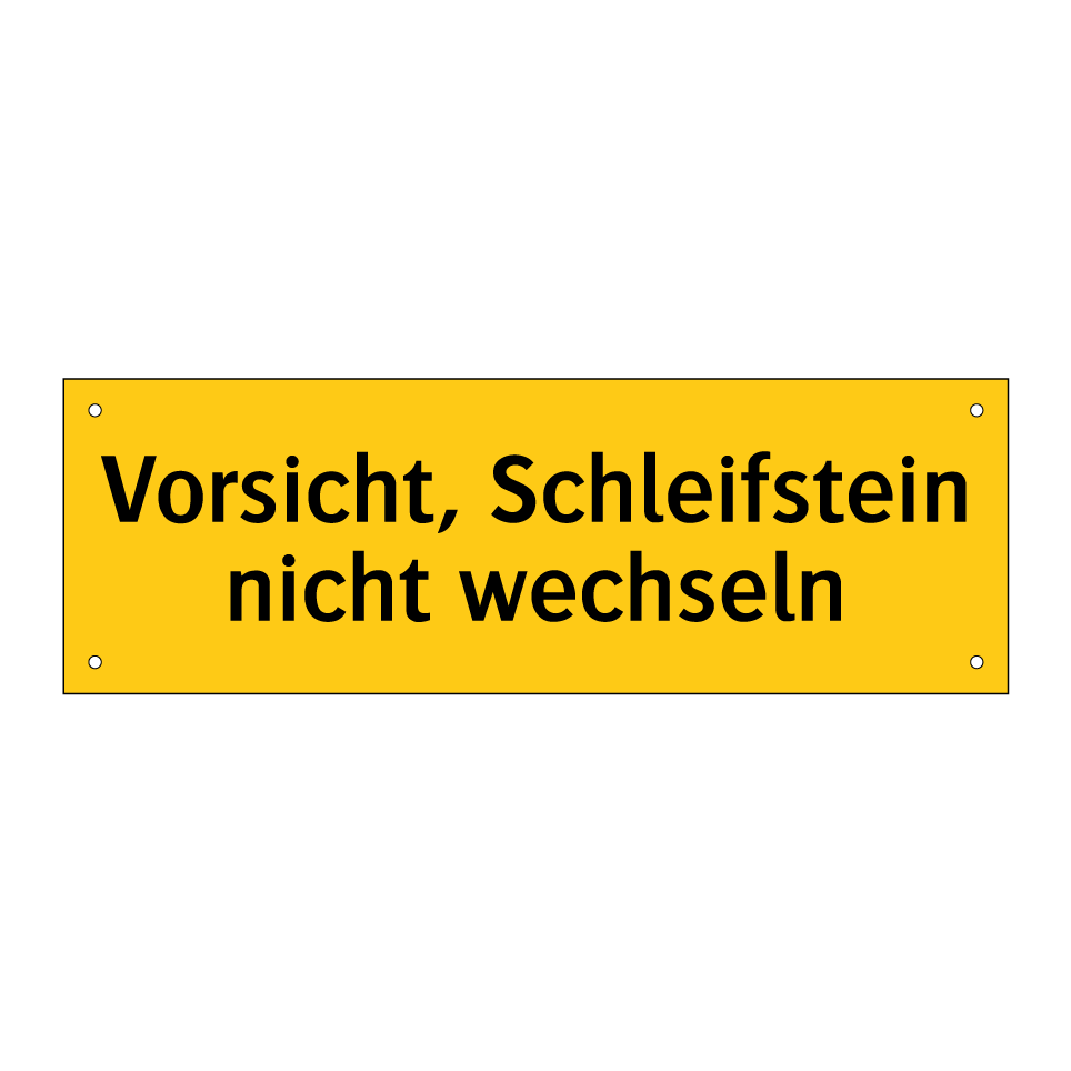 Warnschild mit dem Text Vorsicht, Schleifstein nicht wechseln